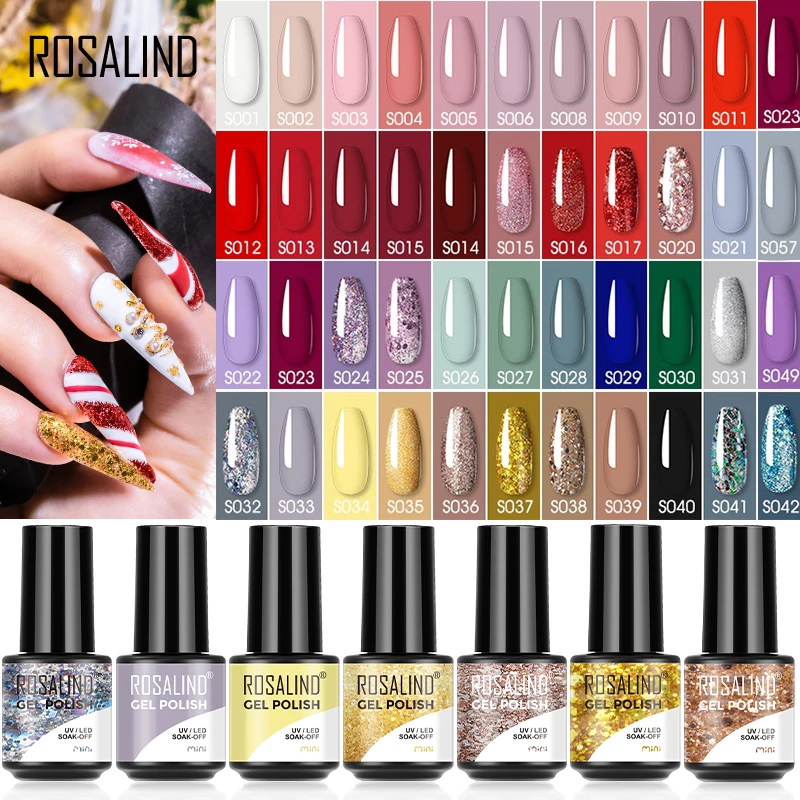 Гель-лак для ногтей ROSALIND, блестящий полуперманентный эмалевый отмачиваемый базовый и топовый лак для дизайна ногтей, нужен УФ светодиодный Гель-лак