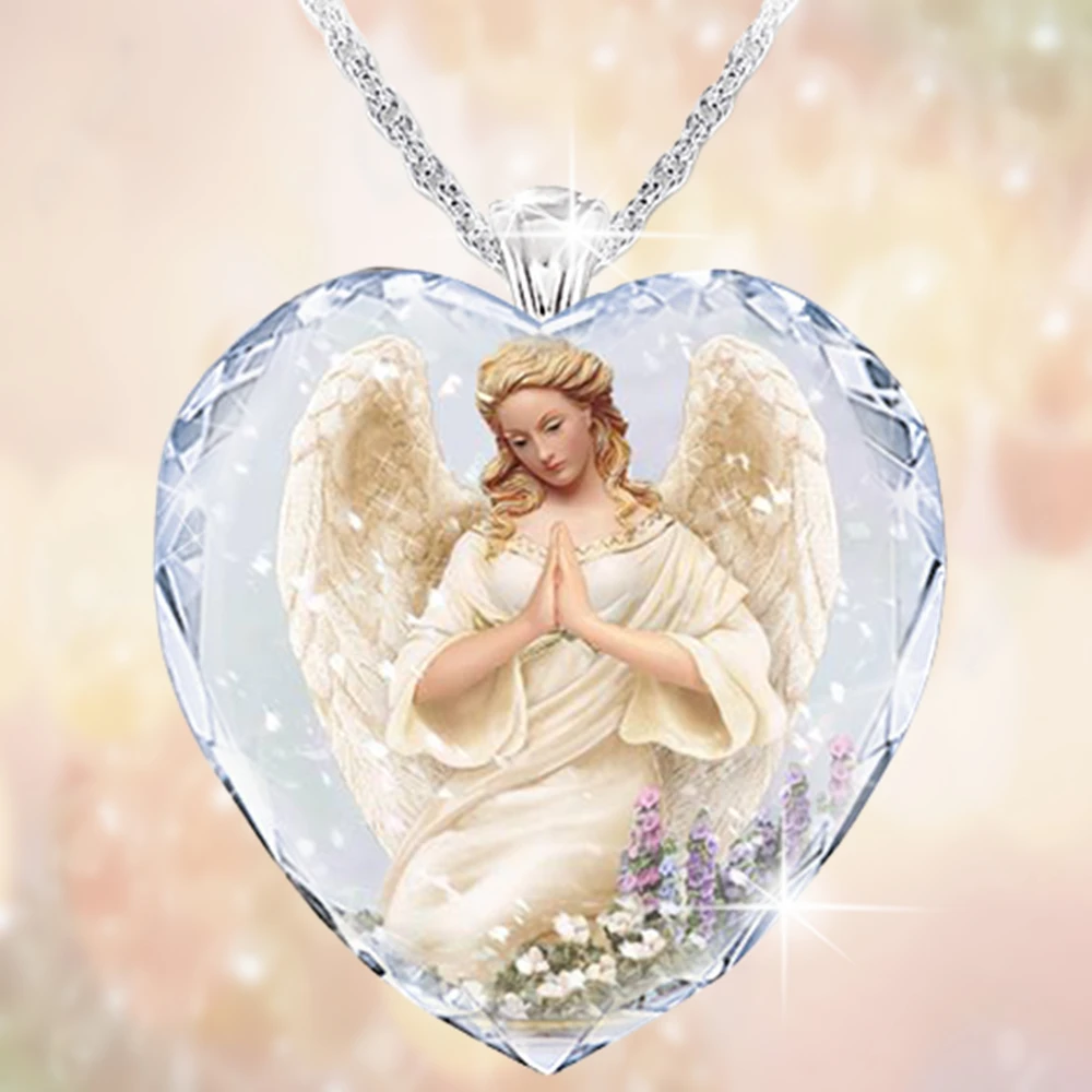Элегантная подвеска в форме сердца ангела, кристальная Изысканная бижутерия благословения, ожерелье, модные женские аксессуары, подарки на день Святого Валентина