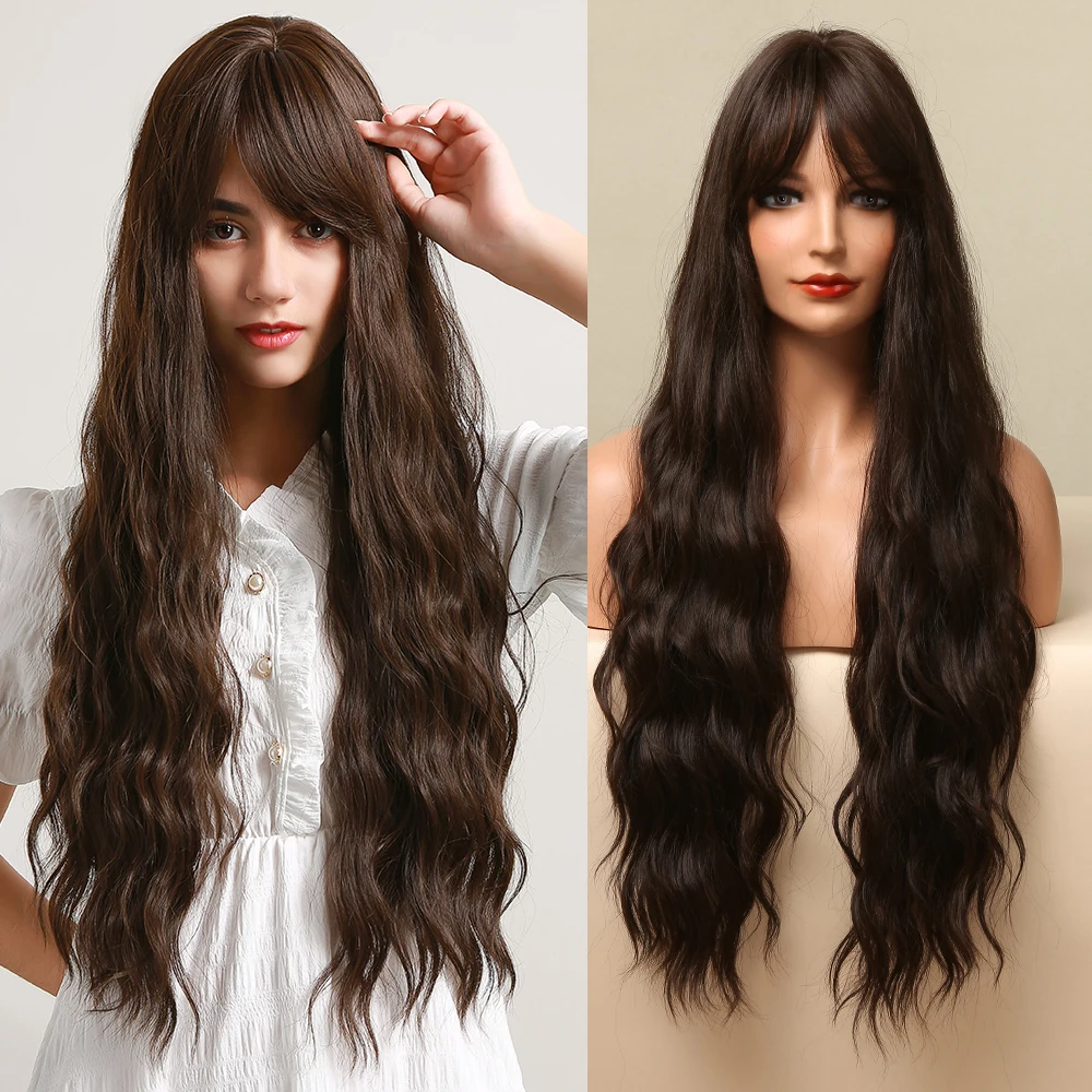 Женский волнистый парик для косплея henmargu, коричневый, медово-светлый парик с волнистыми волосами с эффектом омбре, для вечеринки, на каждый день, с челкой, из термостойкого волокна