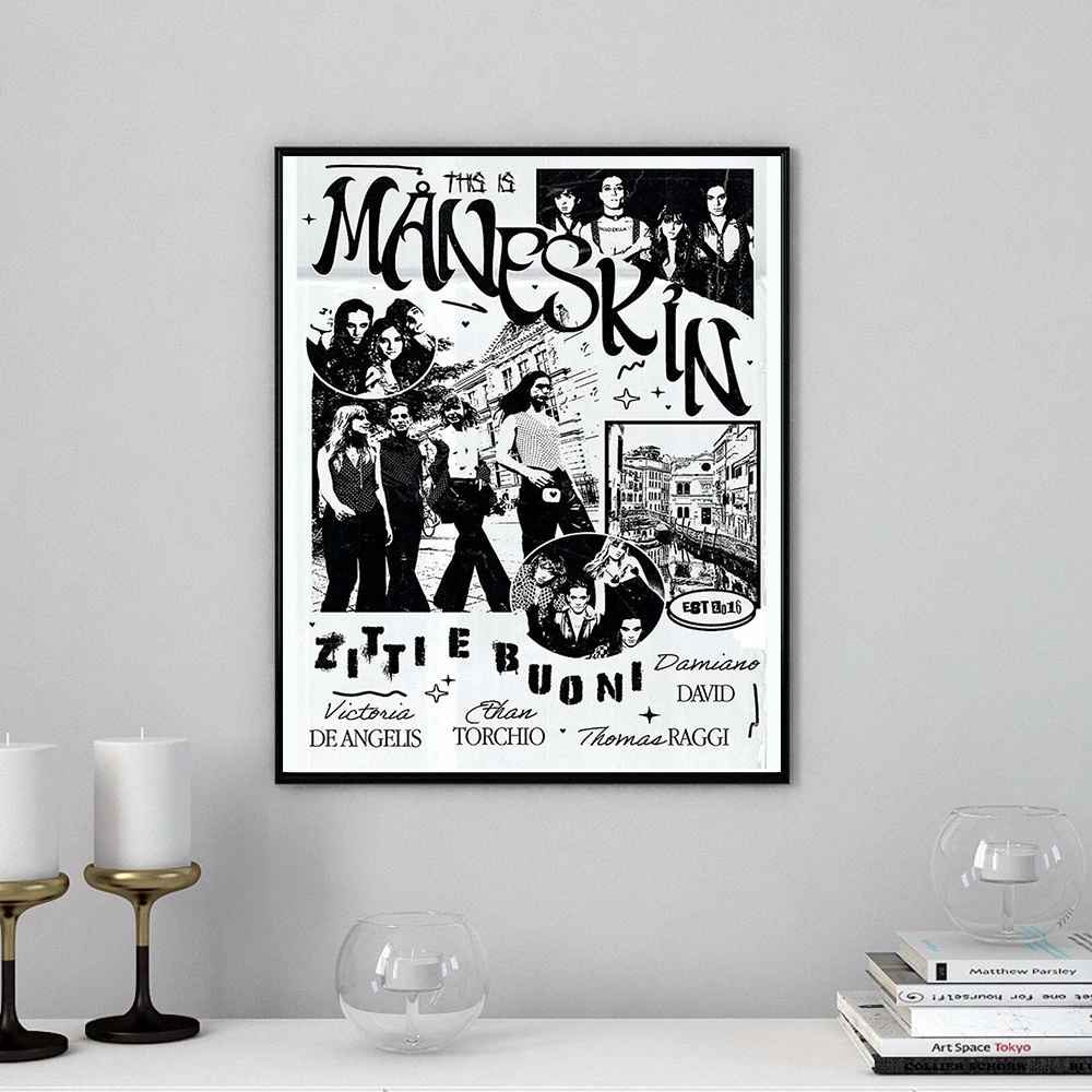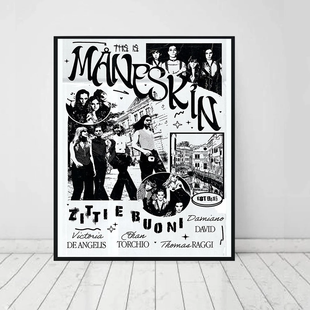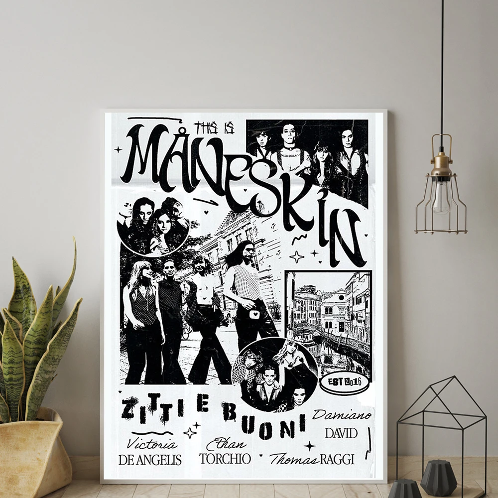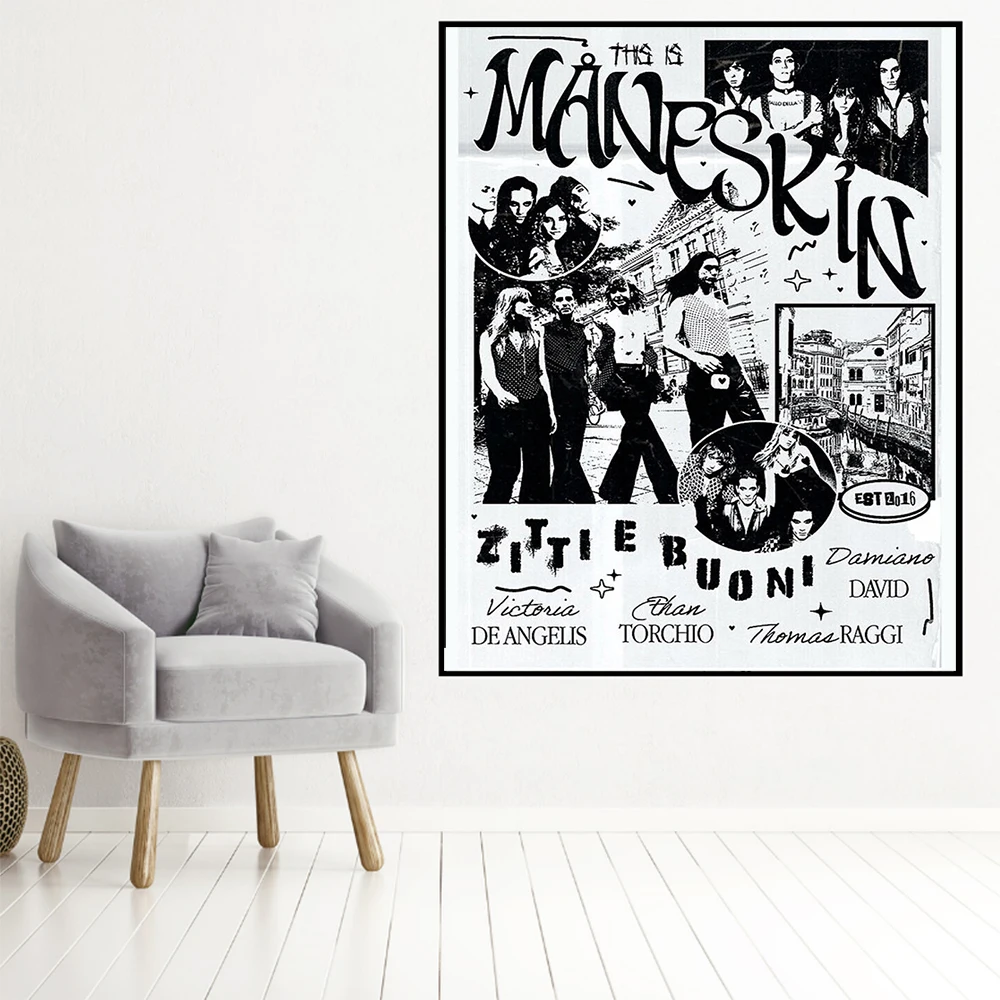 Популярный черный и белый постер Band Maneskin, Картина на холсте, плакаты и принты, Настенная картина для гостиной, домашняя роспись, Декор