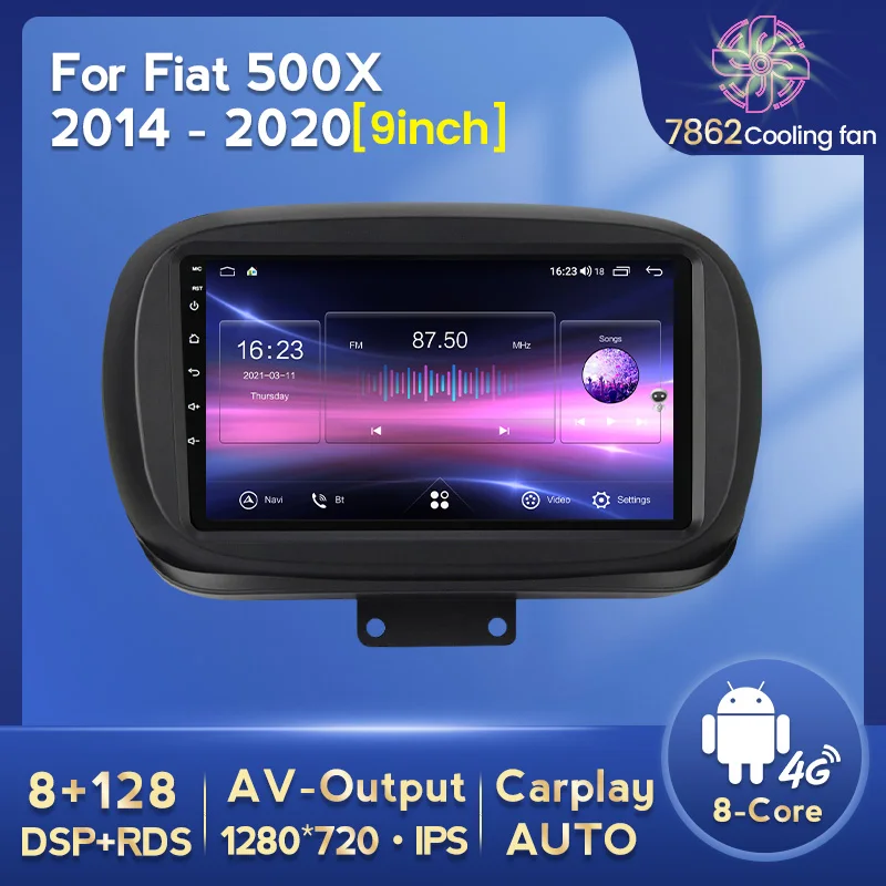 MEKEDE 9 ''8 + 128G 8-ядерный Android 11 Автомобильная интеллектуальная система для Fiat 500X 2014-2020 с беспроводным Carplay DSP охлаждающим вентилятором RDS BT