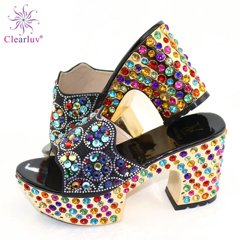 Комплект из женской обуви и сумочек черного цвета , украшенных обувью и сумкой в африканском стиле, стразы г., комплект для вечеринок, Женская итальная обувь