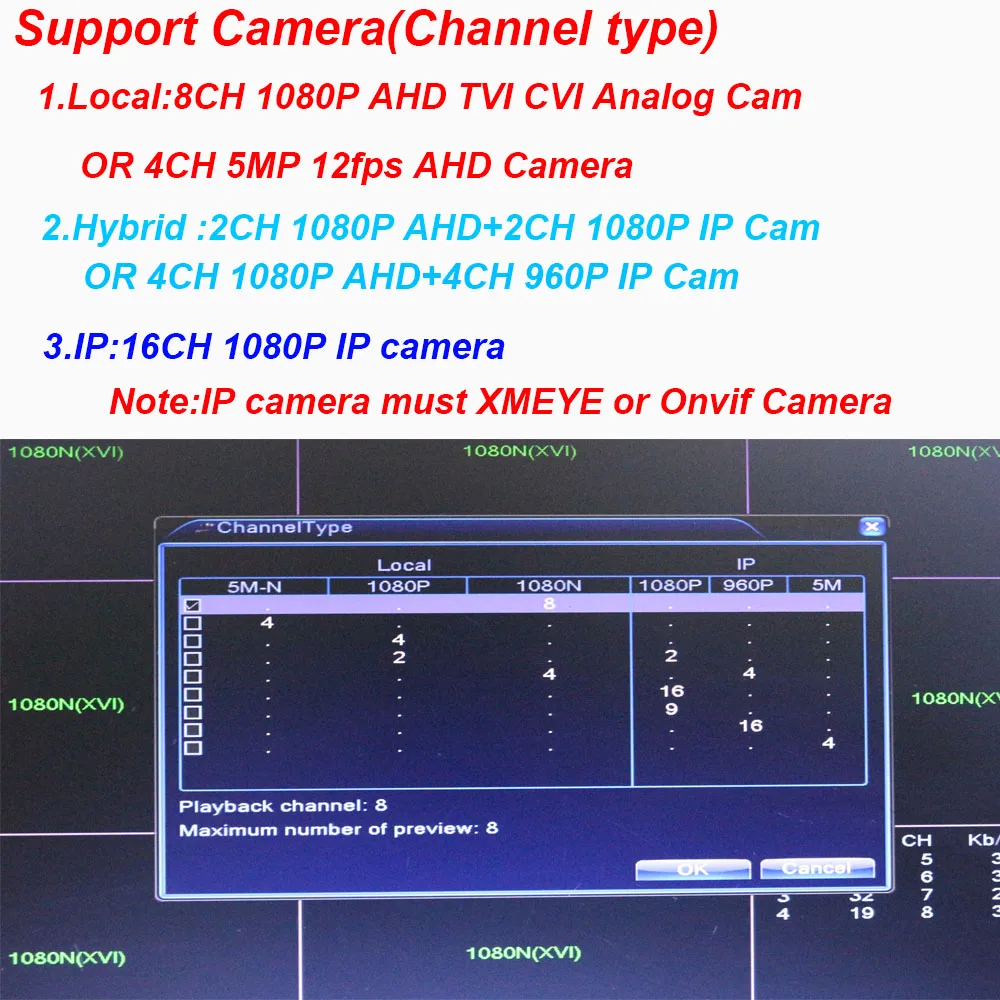 8-канальный видеорегистратор с функцией распознавания лица, H.265, 8 каналов, 5 м-n, 6 в 1, TVI, CVI, гибридная камера видеонаблюдения, HDMI, P2P, Onvif