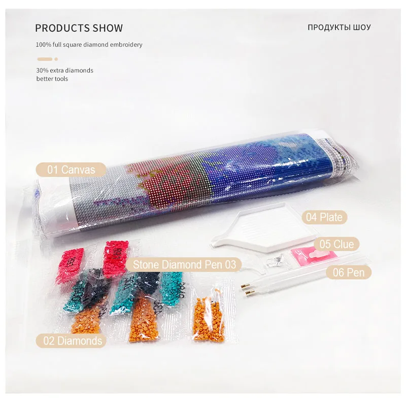 Алмазная живопись с кристаллами RUOPOTY, Набор для вышивки крестико...