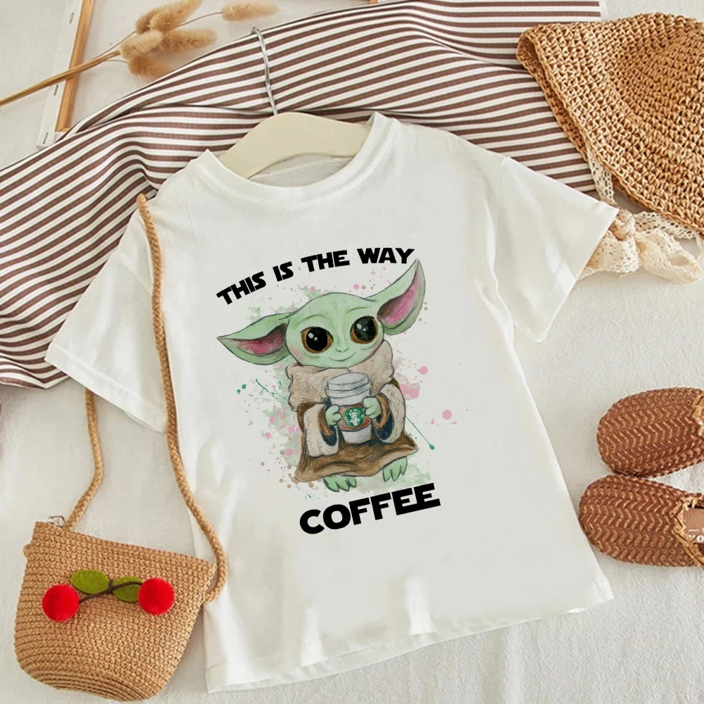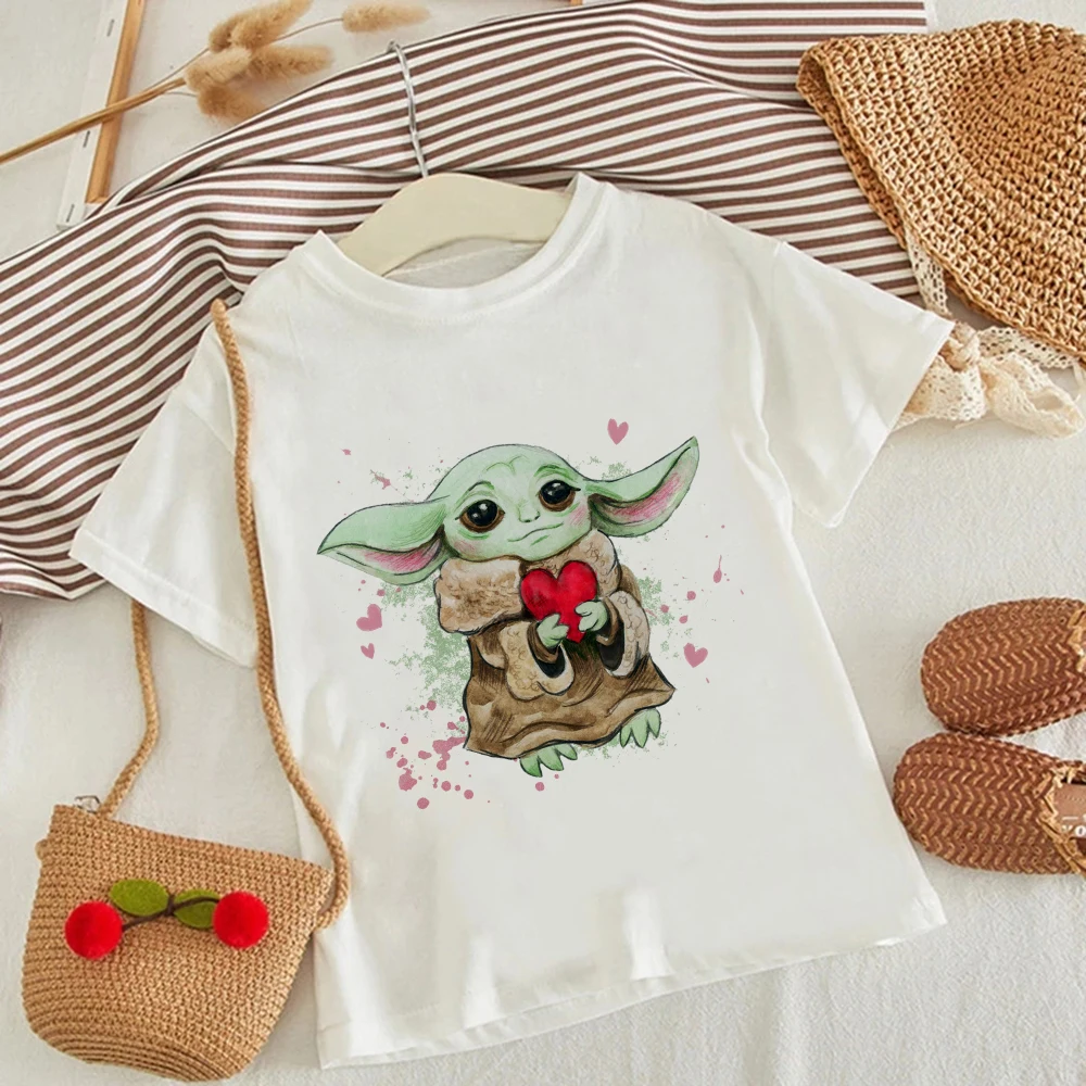 Летняя футболка для маленьких девочек и мальчиков, одежда для братьев и сестер, мягкая детская футболка Yoda с ручной росписью, Детская футболка, Прямая поставка