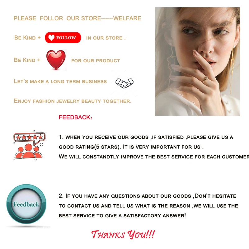 1. Store the jewelry separately and don't mix it with other jewelry or hard objects to avoid scratching the surface;2. Avoid prolonged contact with sweat to corrode the surface;3. Please remove the product when bathing or washing, avoid direct contact with acid and alkali substances;4. Clean with water, detergent, and soft brush to restore the brightness of zircon (it cannot be restored after grinding and scratching);5. When storing, please use cotton cloth or facial tissue to remove the surface sweat and dirt before storing in a sealed bag