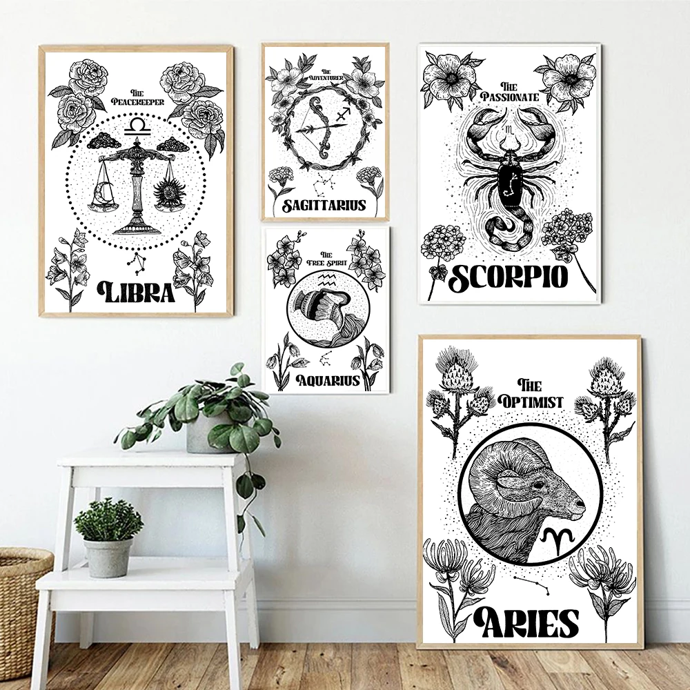 Настенная живопись со знаками Зодиака, астрологический постер в сти...