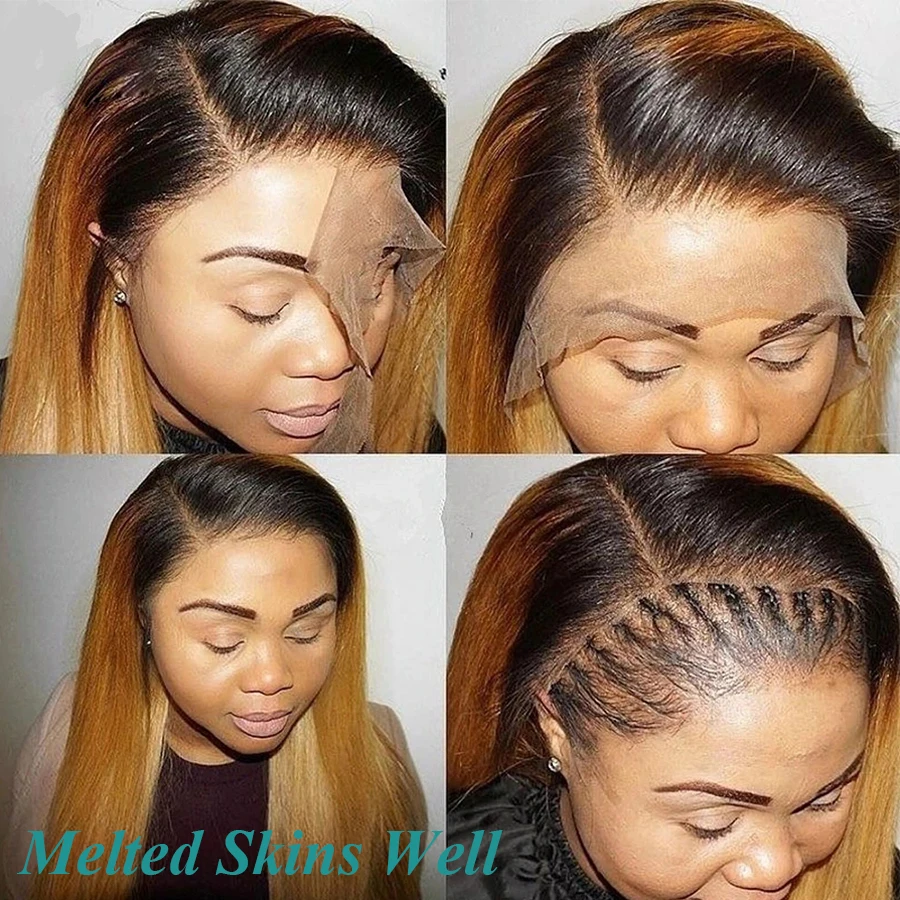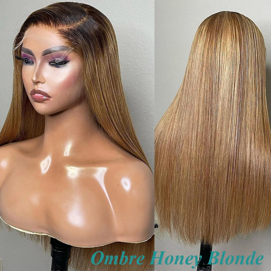 Невидимые парики из человеческих волос с фронтальной застежкой на сетке 5*56*6 HD, Омбре, медовая блондинка для женщин, бразильские прямые волосы, парик с полной фронтальной застежкой