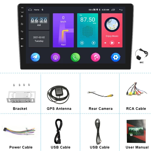 1 х Автомобильный MP5 плеер1 x Антенна GPS1 х электропроводка2 USB адаптера1 х RCA входной и выходной кабель1 x кулачковый провод2 x монтажный кронштейнЧасто задаваемые вопросы: