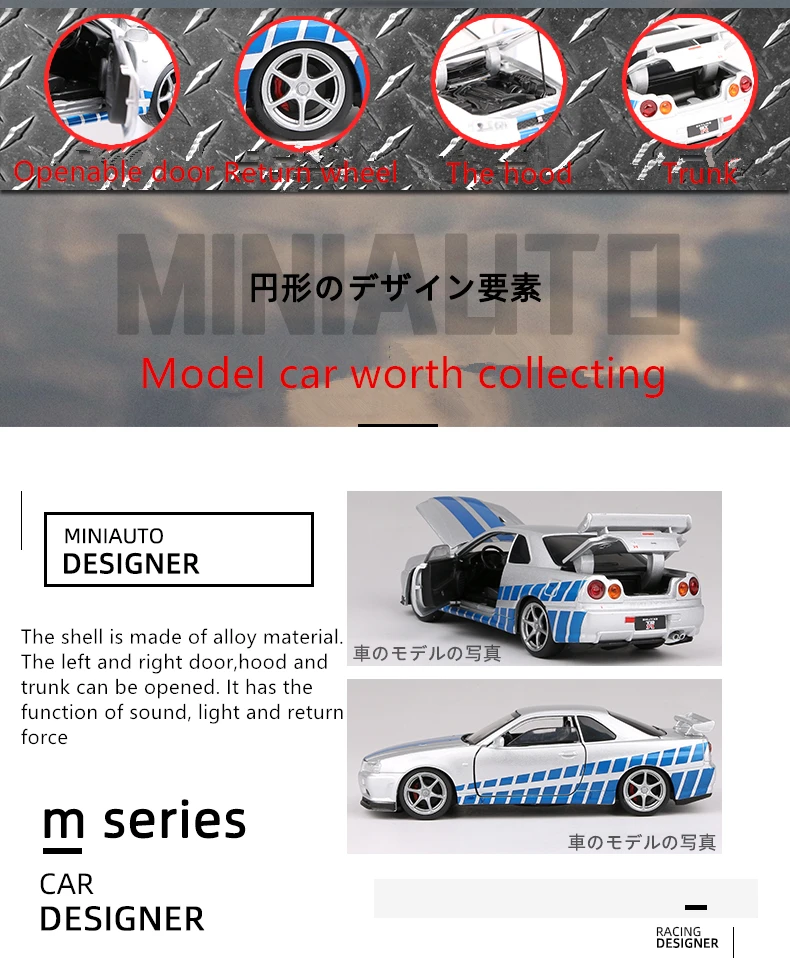 Модель спортивного автомобиля NISSAN GTR R34 из сплава 1:32, Литые ...