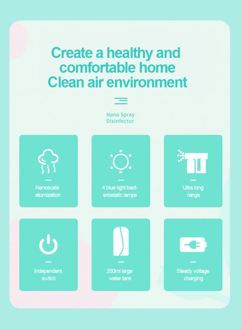 1. Высококачественный нано-распылитель, использование термостойкого материала ABS, быстрое запотевание, большое количество тумана