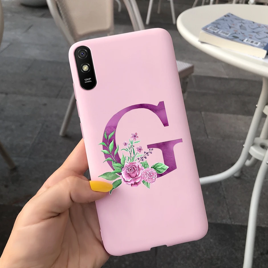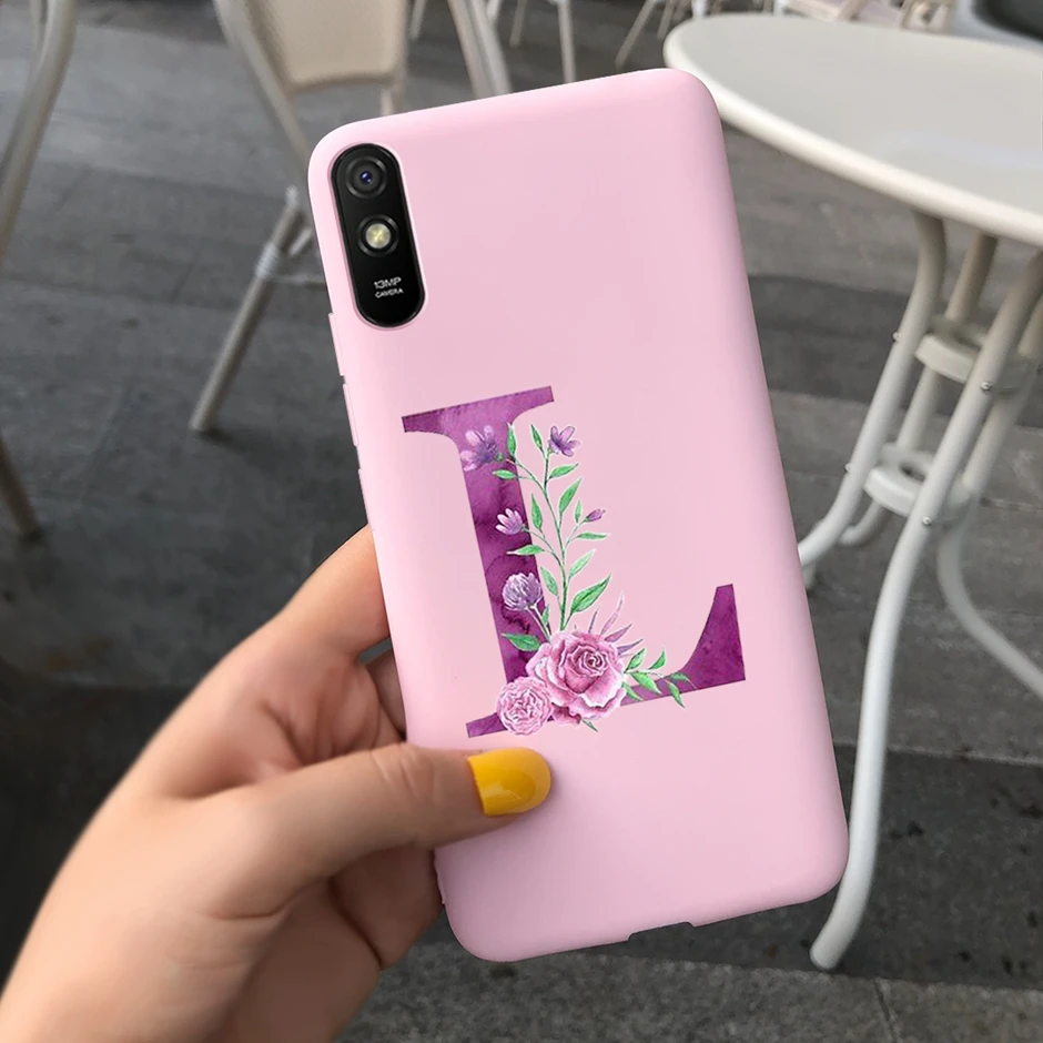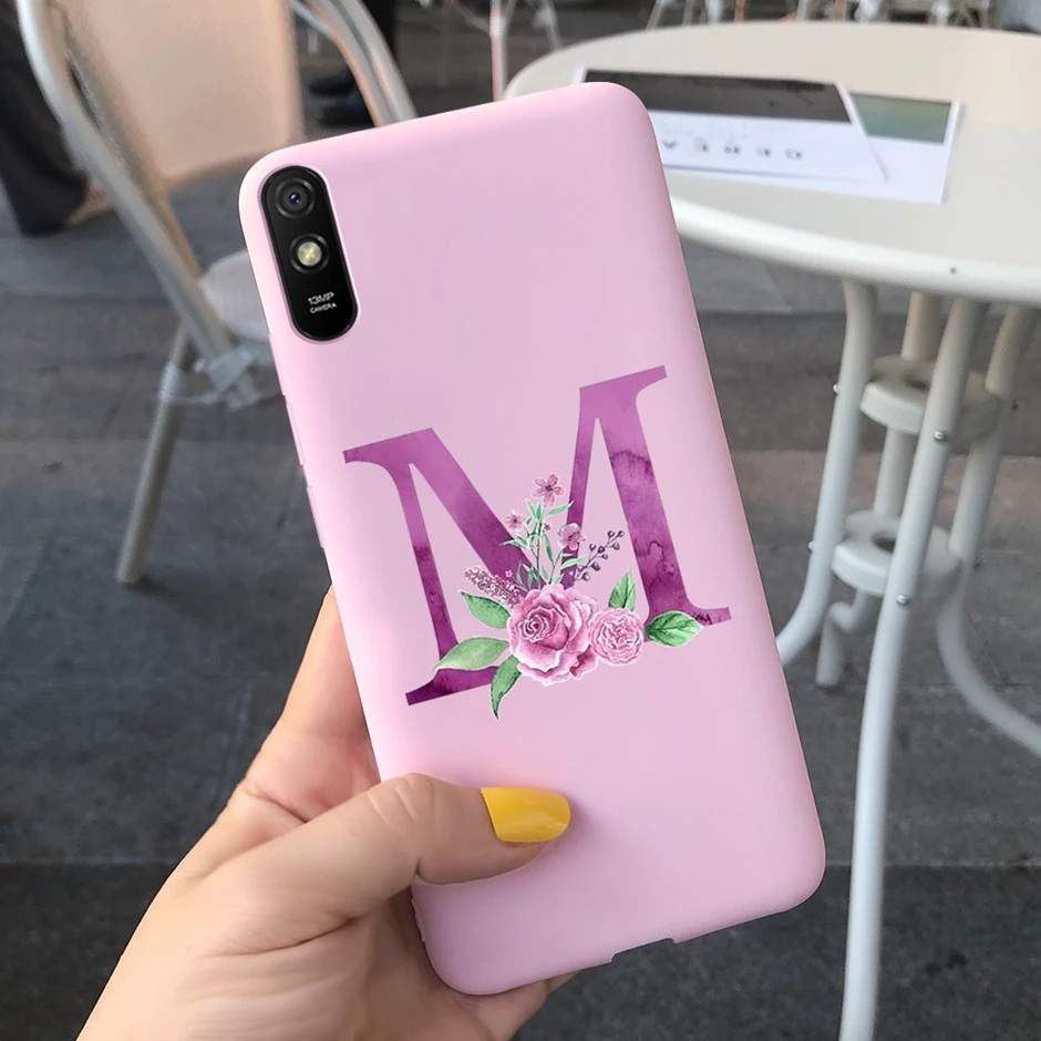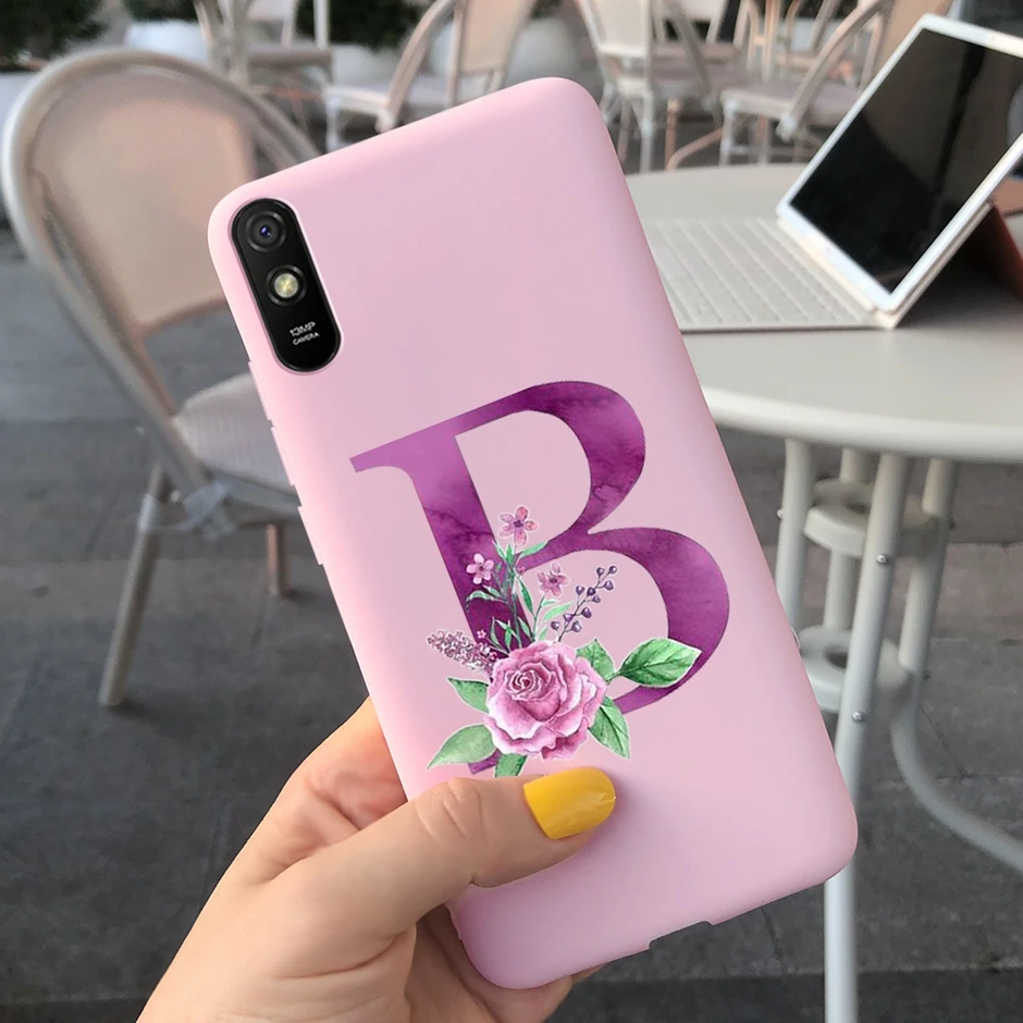 Розовый телефонный чехол с надписью A to Z для Xiaomi Redmi 9A, окрашенный силиконовый чехол для Redmi 9A, мягкий чехол 6,53 дюйма, черный чехол