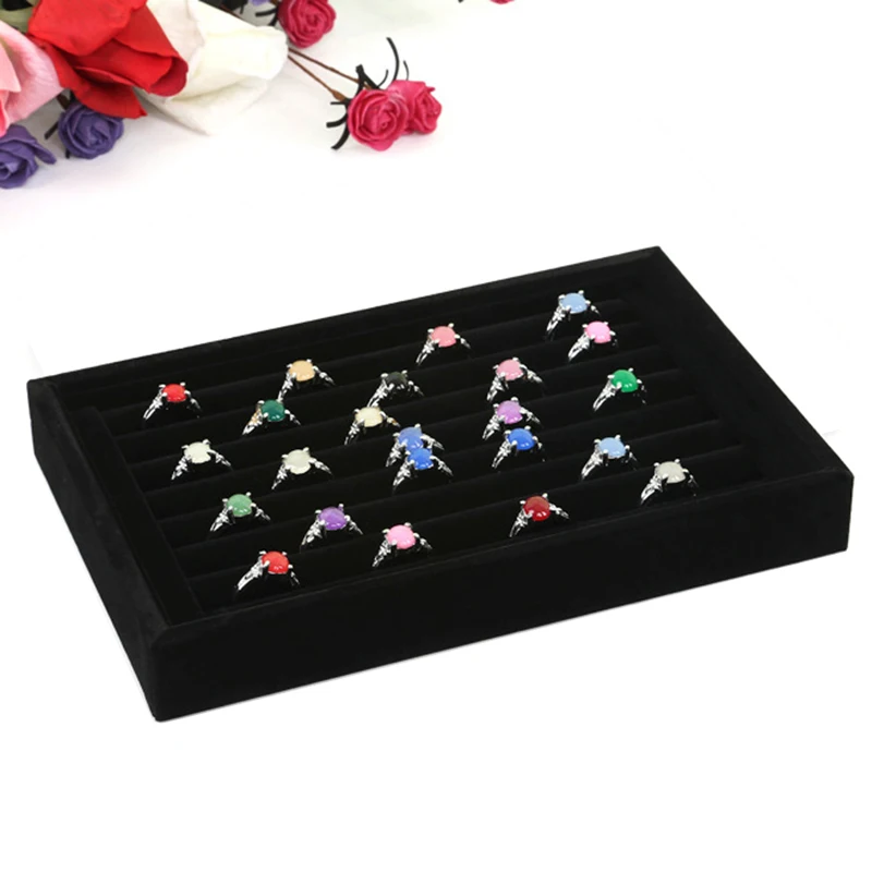 Шкатулка для демонстрации колец, картонный органайзер для хранения ювелирных изделий, 70 ячеек, черный цвет, для демонстрации колец, запонок, лоток для ювелирных изделий
