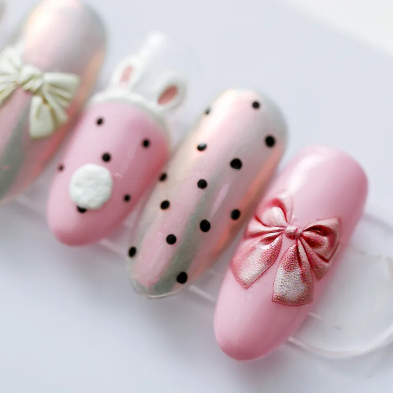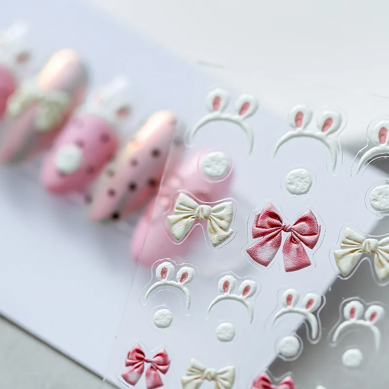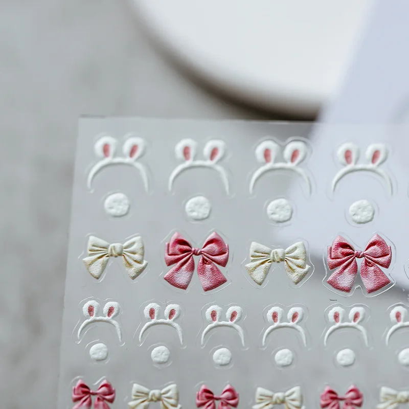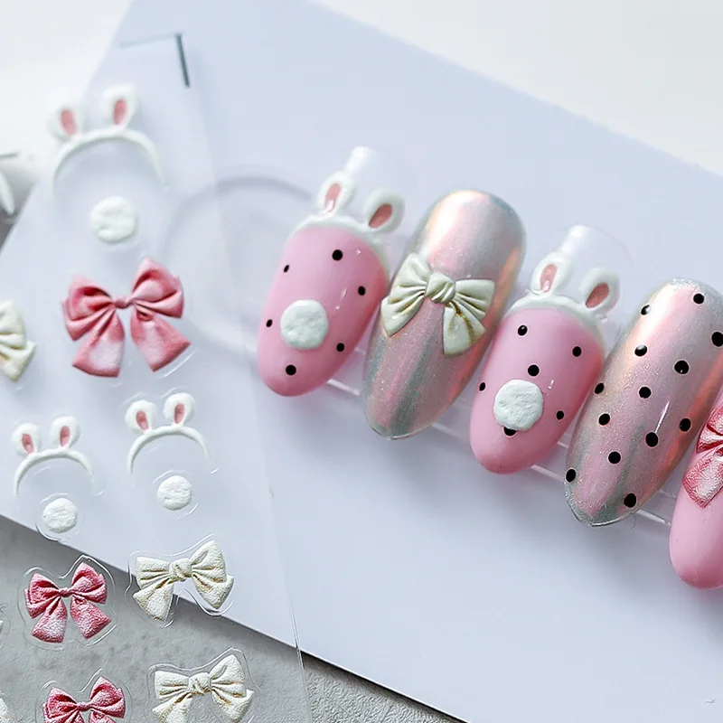 Милые наклейки для дизайна ногтей, розовый галстук-бабочка, наклейки для ногтей, милые украшения для ногтей с кроличьими ушками для девочек, аксессуары для маникюра