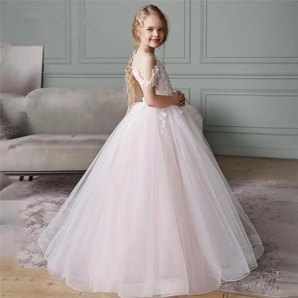 Кружевное Тюлевое платье с цветочным принтом для девочек, детское платье для первого причастия, бальное платье принцессы, платья для свадебной вечеринки 2022