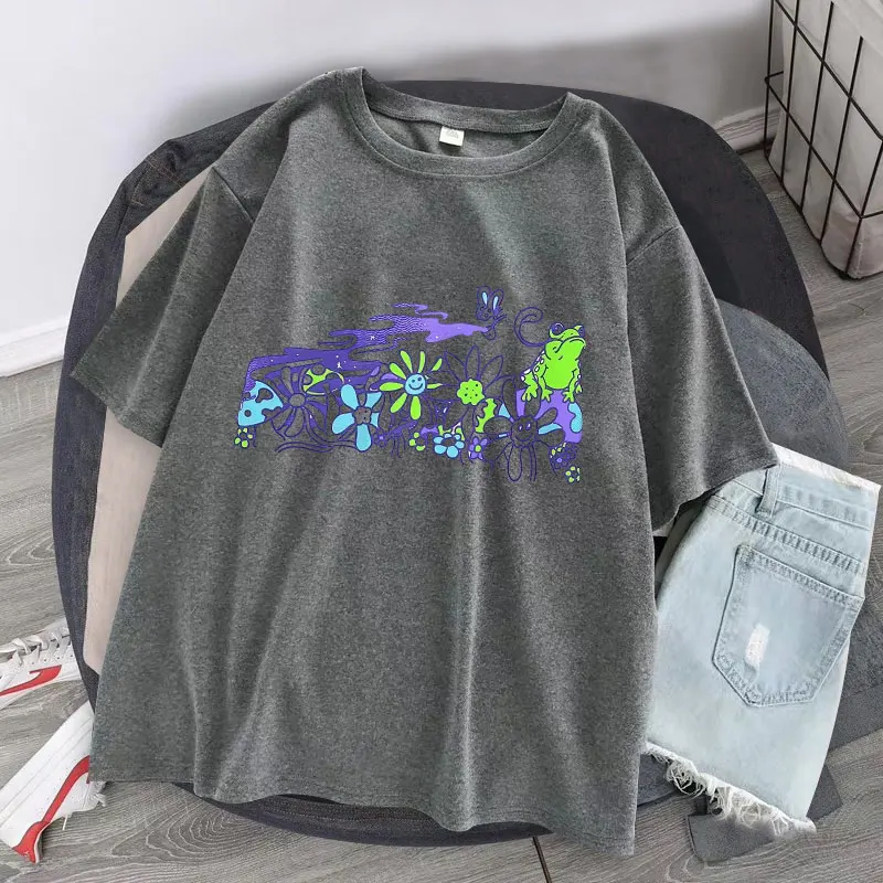 Футболка женская хлопковая с принтом лягушки и графическим принтом