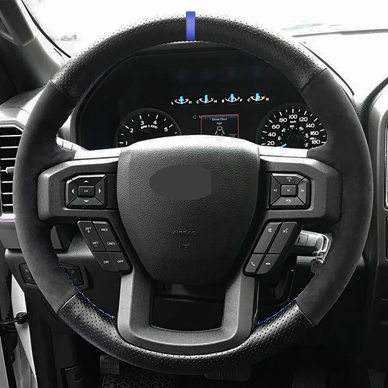 Чехол рулевого колеса автомобиля Нескользящая черная натуральная кожа замша для Ford F150 F-150 2015 2016 2017 2018 2019 2020 автомобильные аксессуары