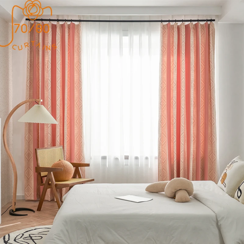 Шторы блэкаут из хлопка и льна, розовые широкие затемняющие шторы с геометрическим принтом для гостиной, спальни, украшение для дома на заказ