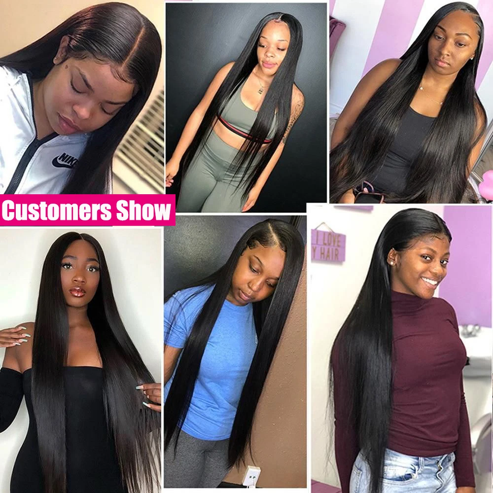 Парики женские прямые из натуральных человеческих волос, 13 х6 дюймов
