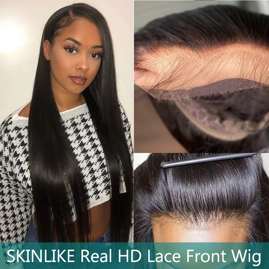 Парики из человеческих волос на фронте, 36 дюймов, HD, 250% плотность, прямые бразильские человеческие волосы, парик 13x6 13x4