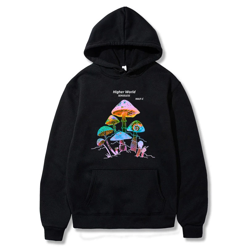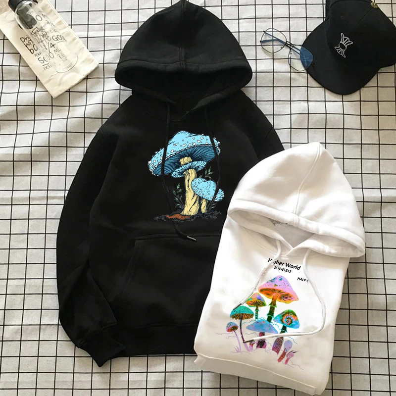 Женские и мужские толстовки в стиле Харадзюку, Разноцветные Повседневные пуловеры с капюшоном и принтом в виде грибов, толстовки большого размера, Женская толстовка