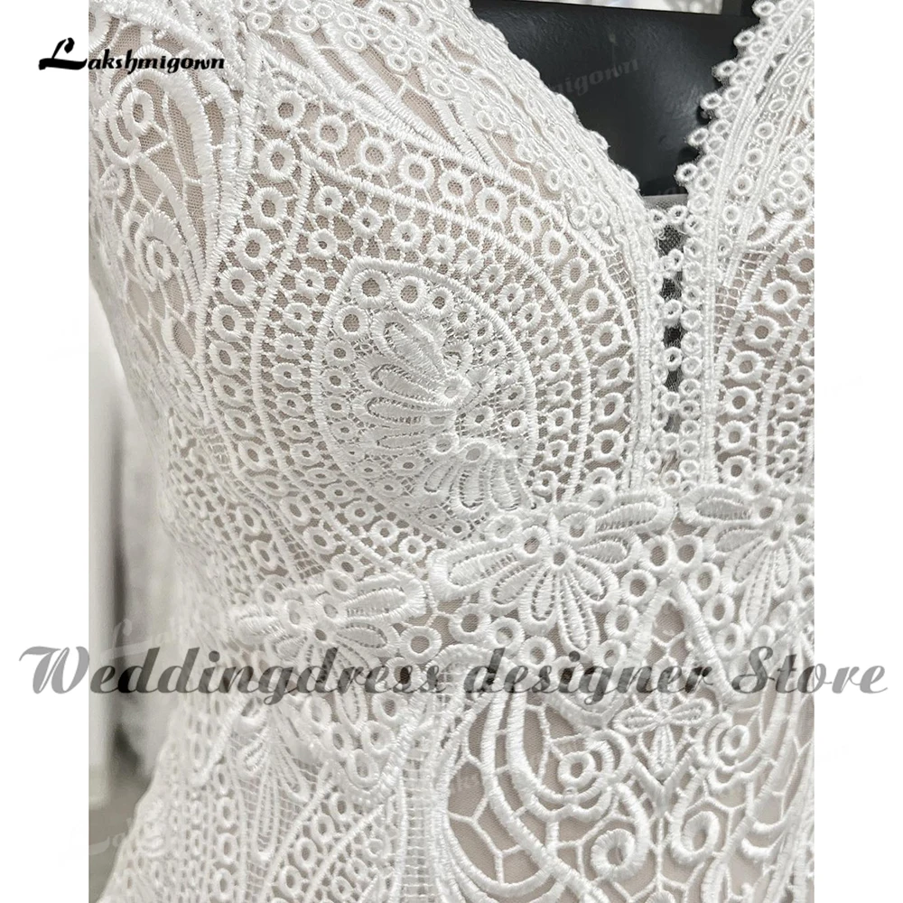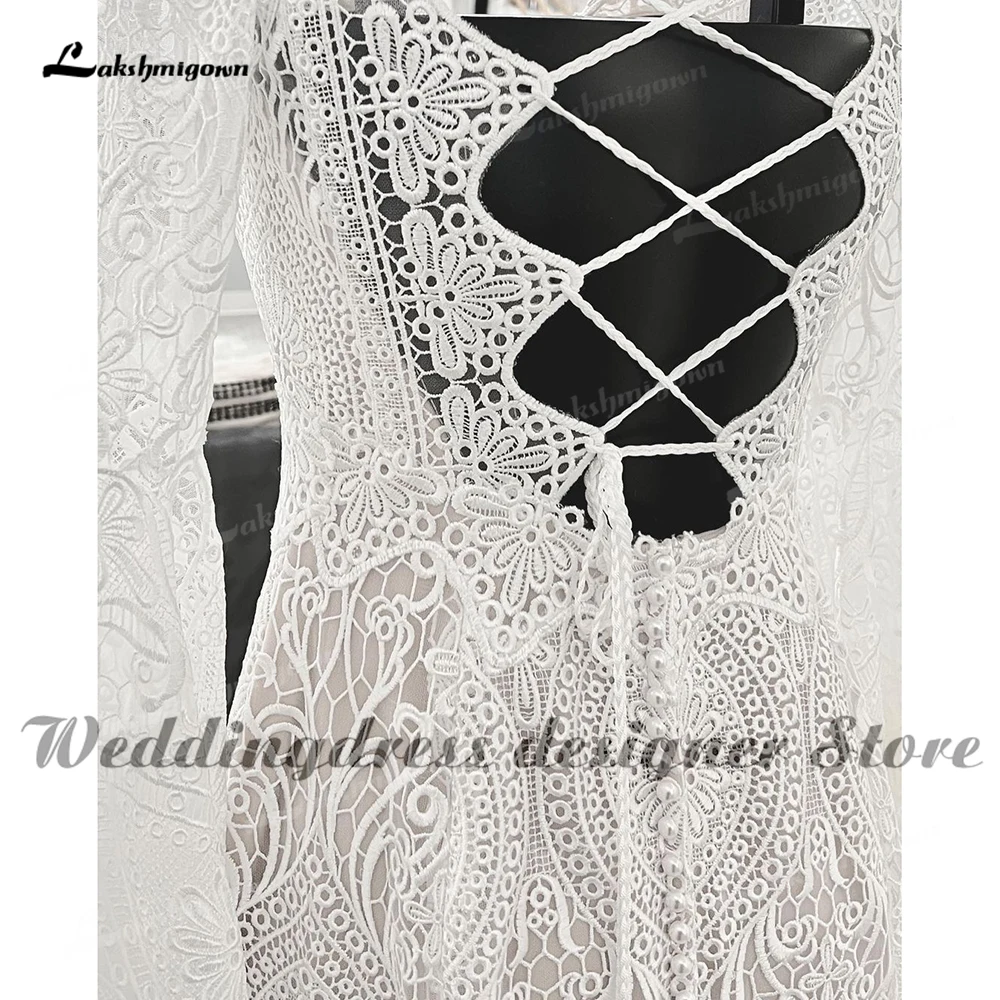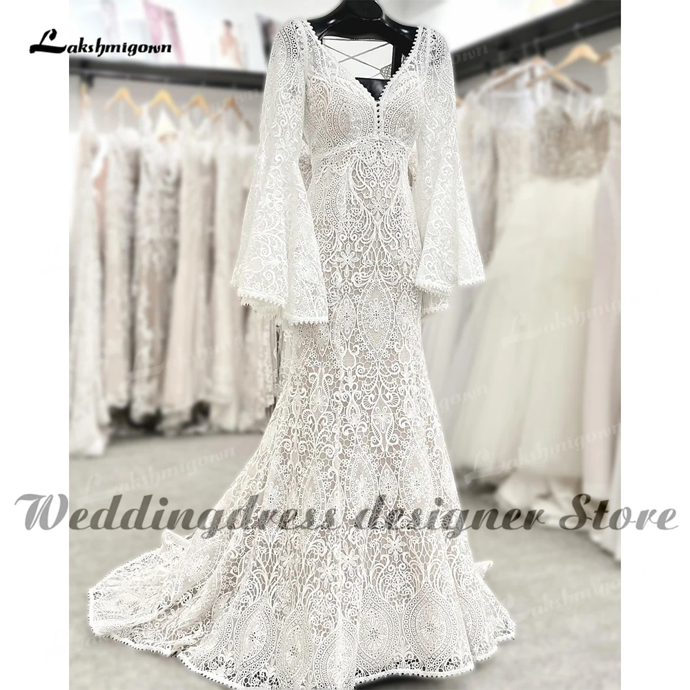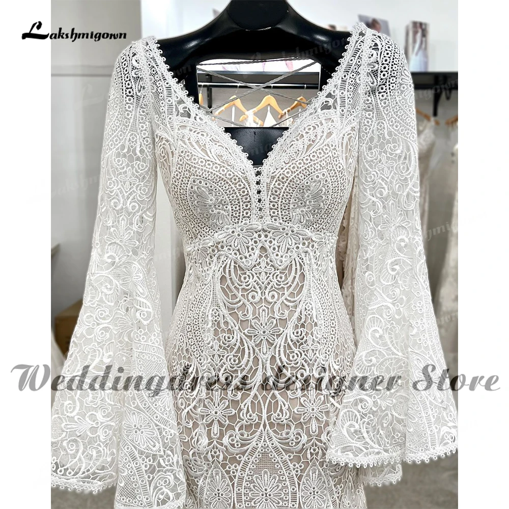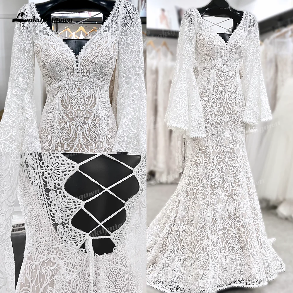 Кружевное свадебное платье-русалка, с длинным рукавом и V-образным вырезом