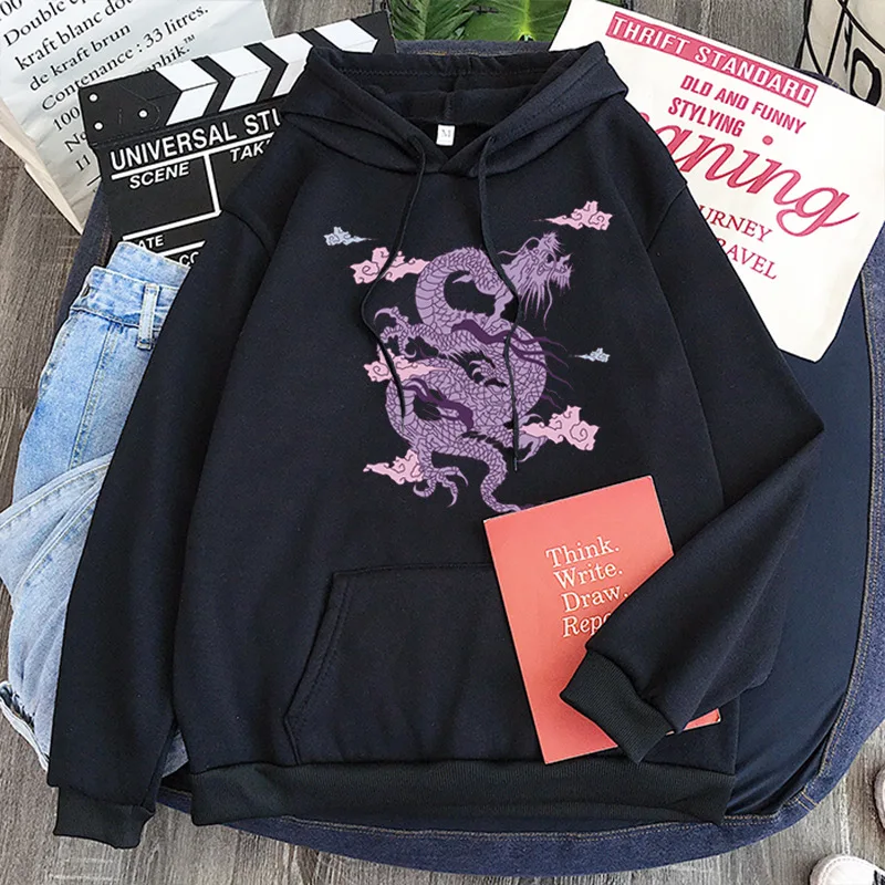 Женская толстовка с капюшоном и принтом дракона, Свободные повседневные пуловеры с капюшоном, толстовки в стиле хип-хоп, уличные Топы