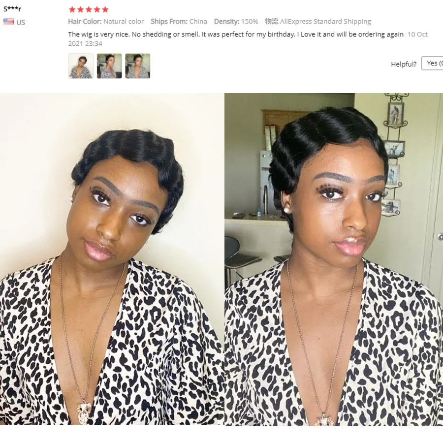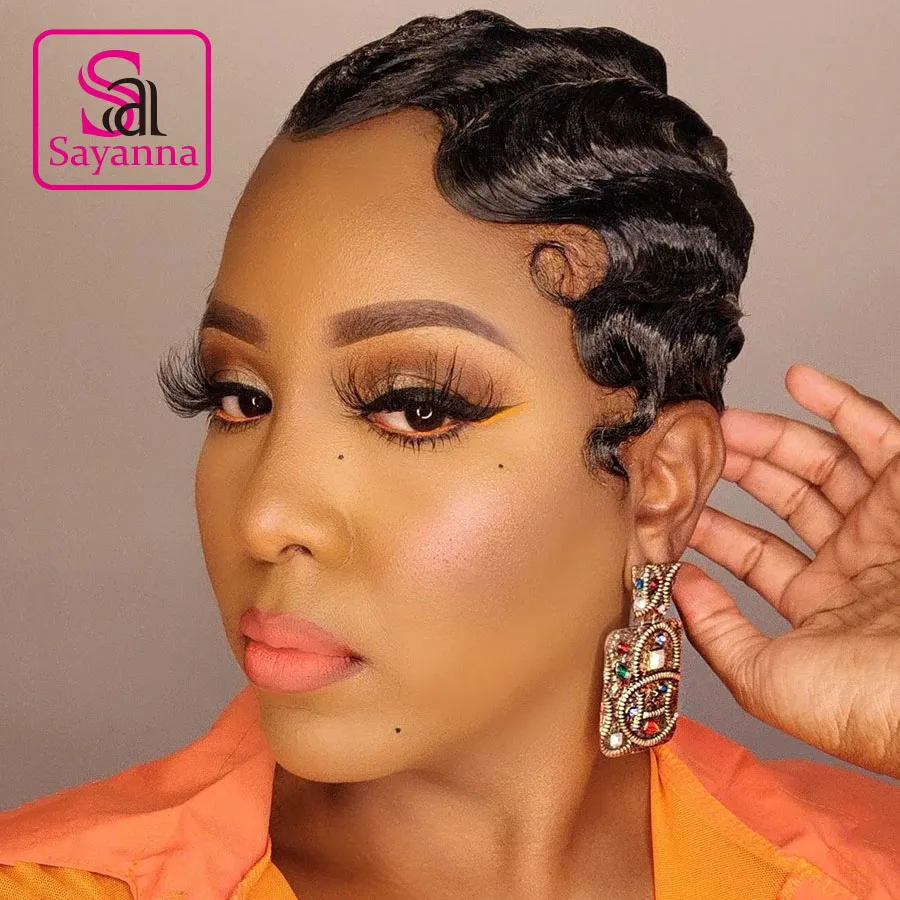 Парик с короткой пальцевой волной, недорогой парик, полный машинный парик из человеческих волос, Короткие парики, человеческие волосы для черных женщин, парик с глубокой волной, бразильский