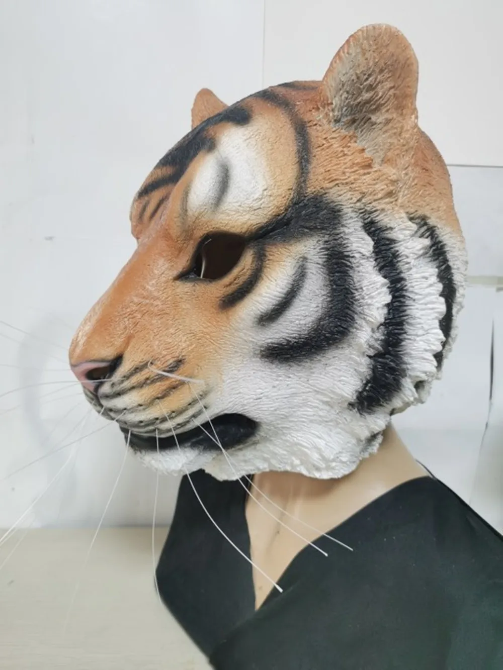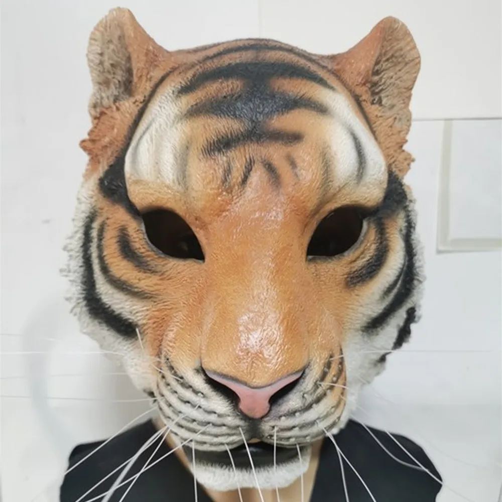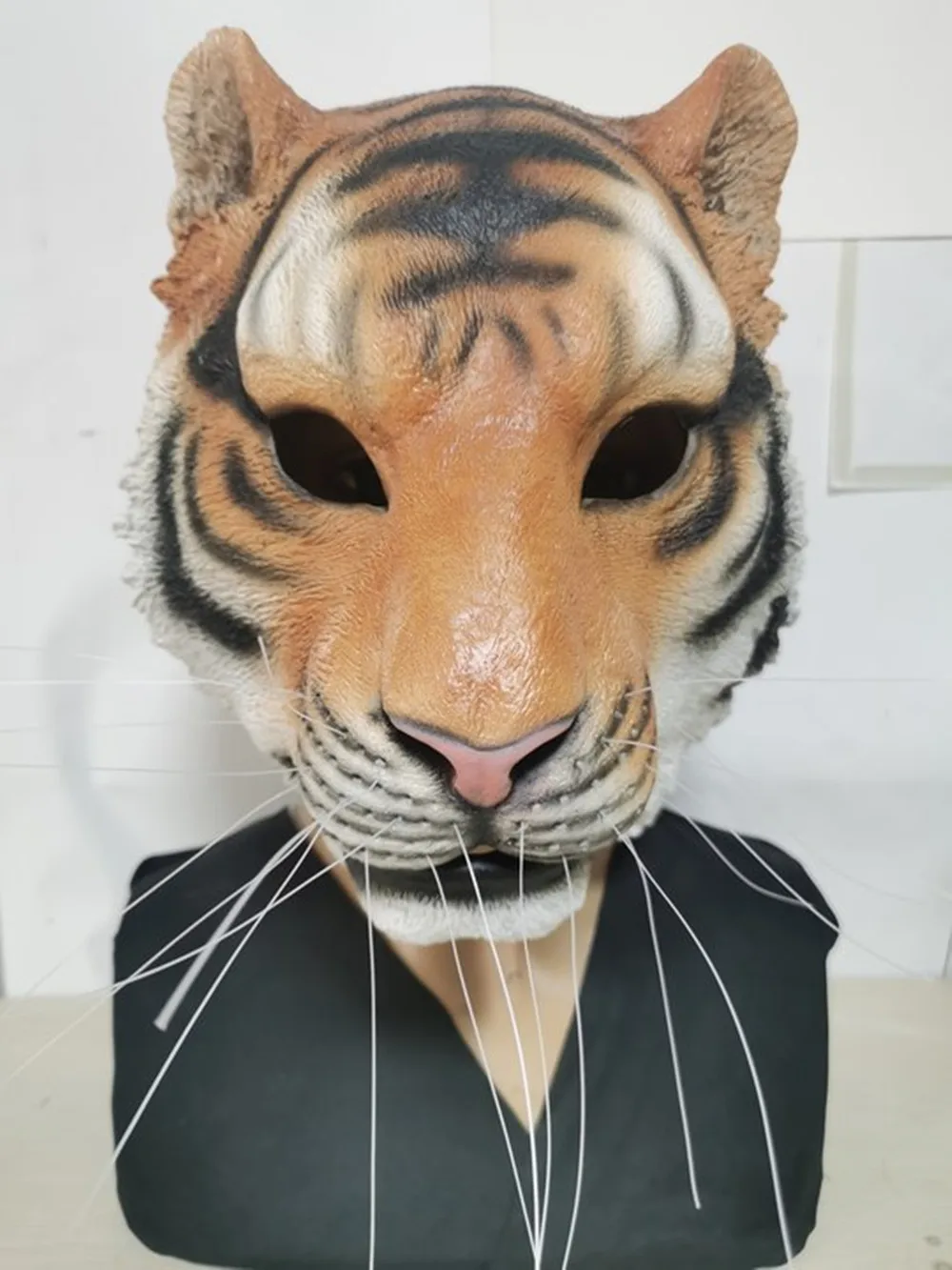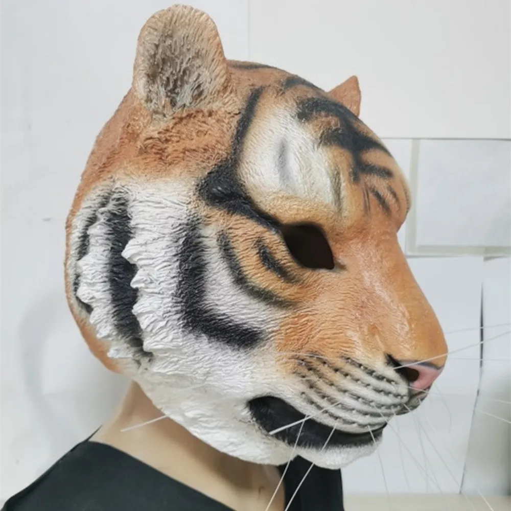 Латексная маска с капюшоном леопарда Панты и сибирского тигра для косплея диких животных для взрослых, украшение на Хэллоуин, реквизит для вечеринки, костюм