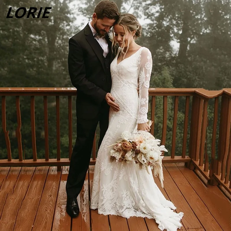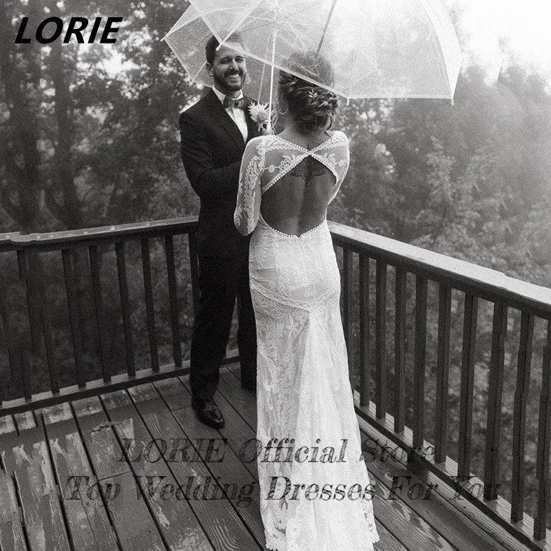 LORIE элегантные кружевные свадебные платья русалки с длинным рукав...