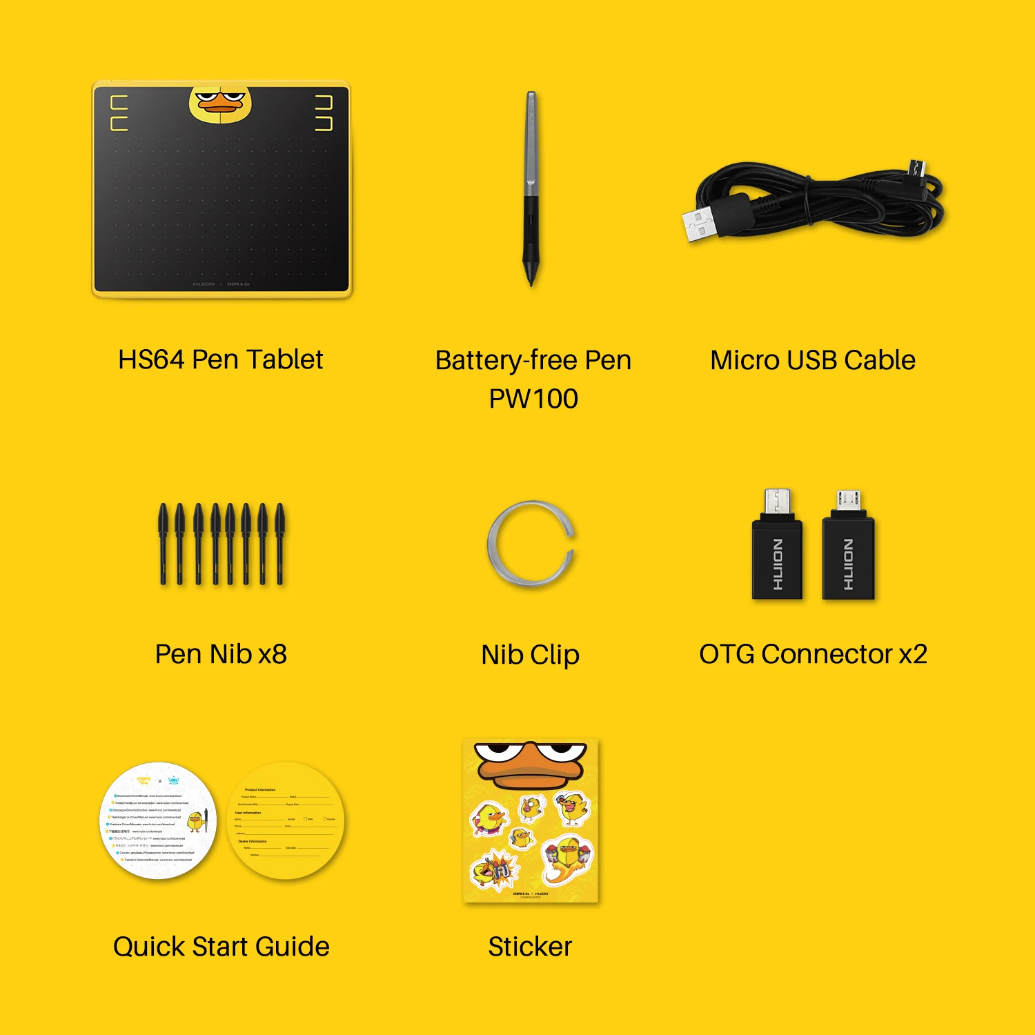 Графический планшет HUION HS64, 8192 уровней, с безбатарейным стилусом