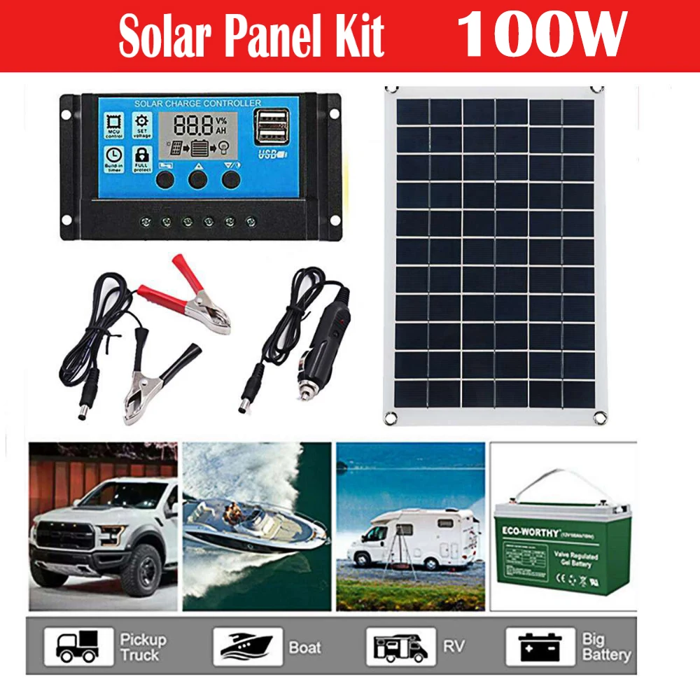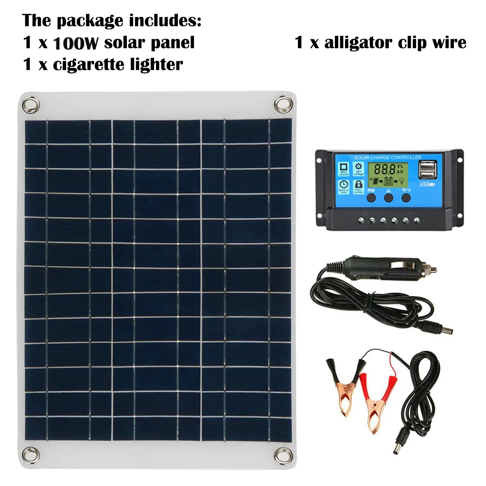 Панель Солнечная водонепроницаемая, 100 Вт, 12 В, USB-зарядка, 30 А
