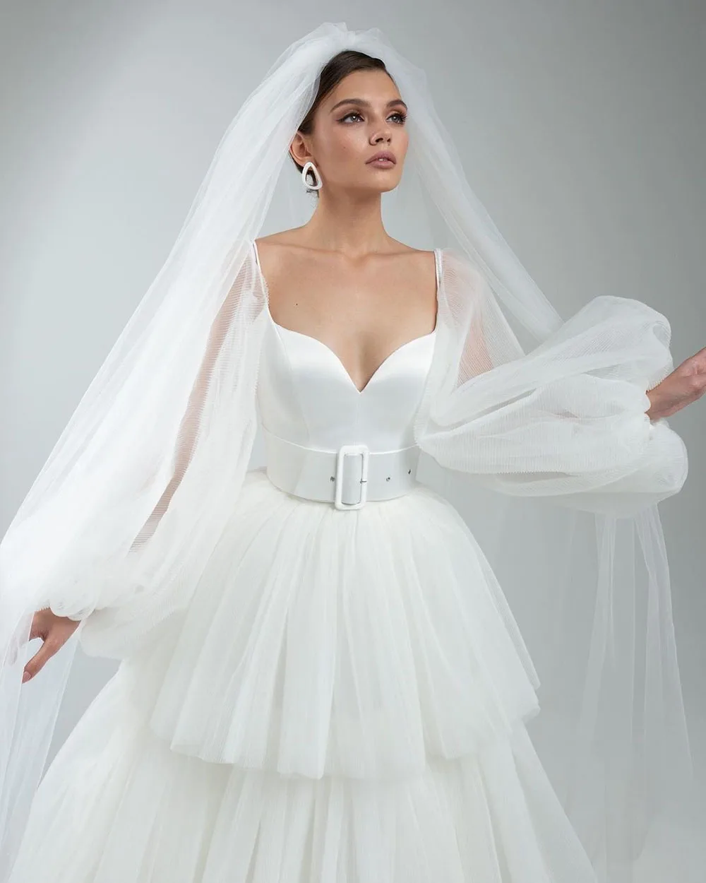 Многоярусное свадебное платье Sevintage в стиле бохо, с рукавами-фонариками, на тонких бретельках, свадебные платья на заказ