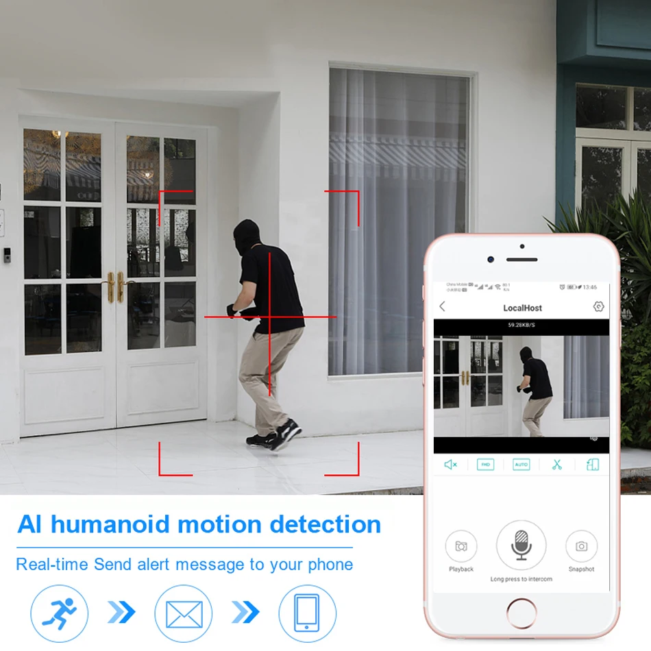 Обнаружение лица AI более легко уловить детали вокруг вас. Когда кто-то вторгается, камера безопасности «sm» может четко запечатлеть детали лица человека и защищать его в любое время.