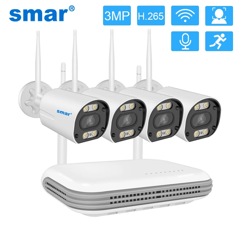 Беспроводная система видеонаблюдения Smar, H.265, 3 Мп, HD, двухстороннее аудио, водонепроницаемая IP-камера безопасности, 8 каналов, P2P NVR, комплект видеонаблюдения