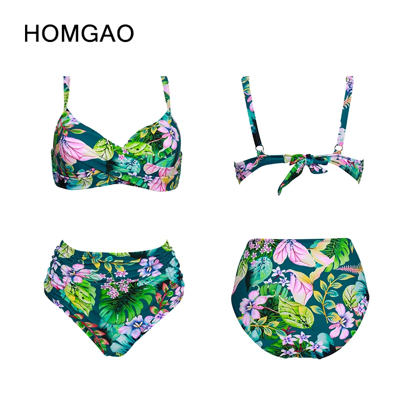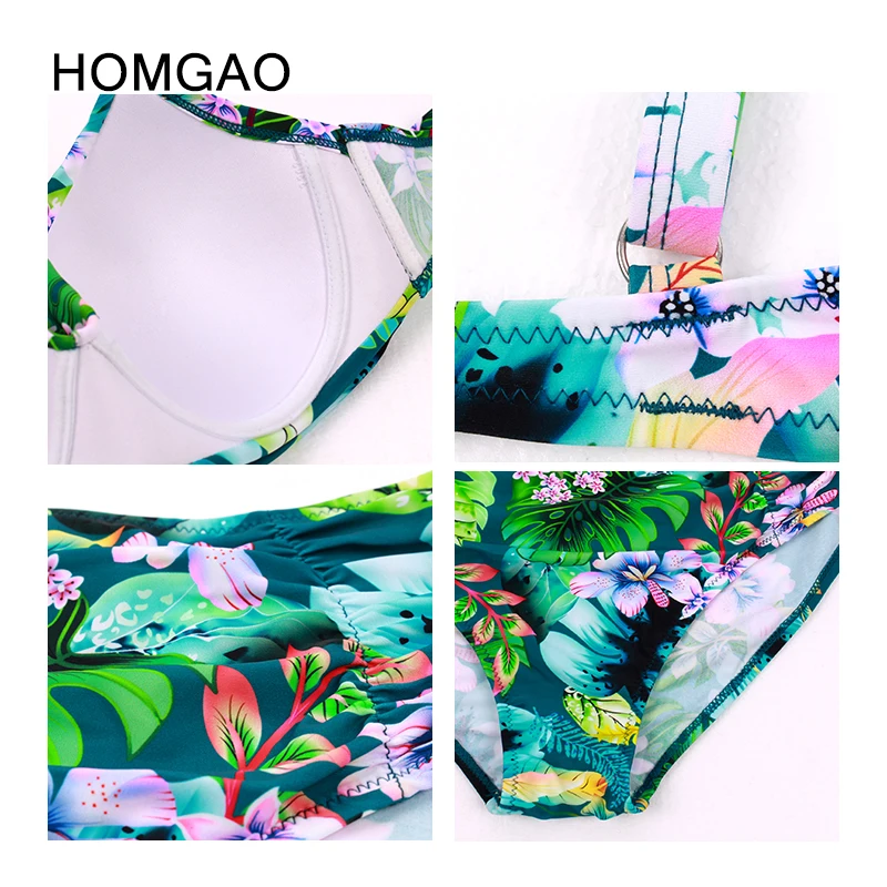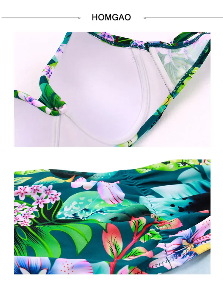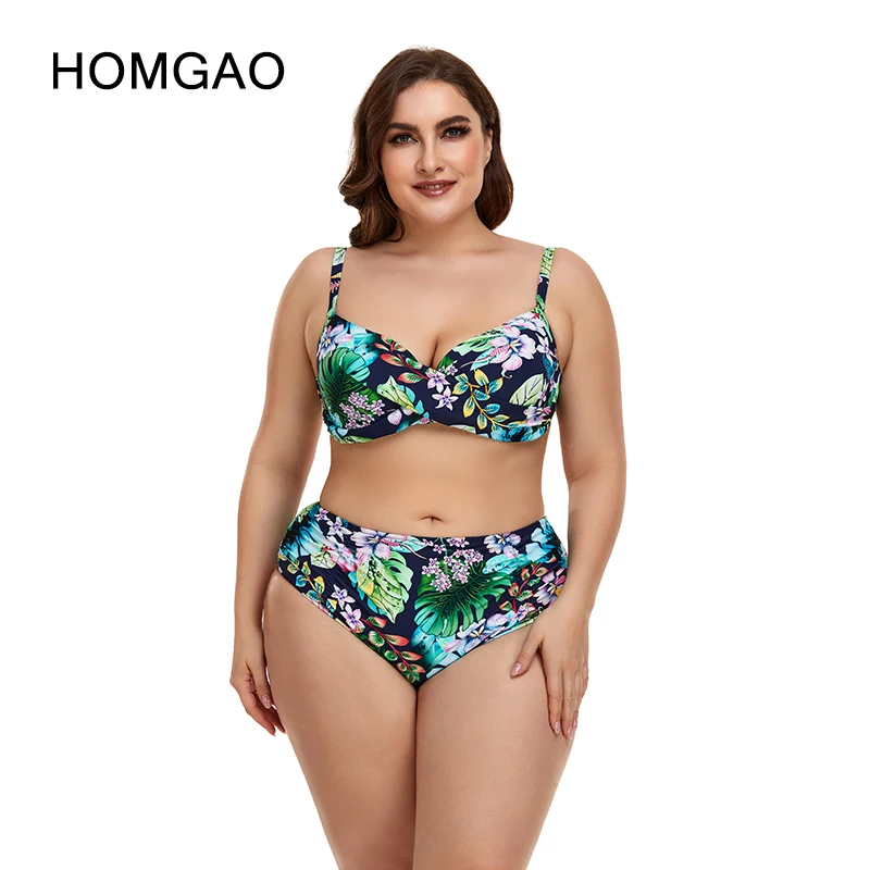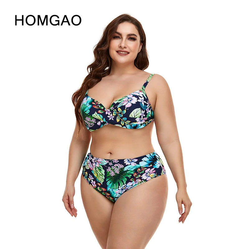 HOMGAO сексуальный большой купальник 4XL для женщин купальник пуш-ап бикини с высокой талией с принтом в стиле ретро женский комплект купальный костюм пляжное бикини