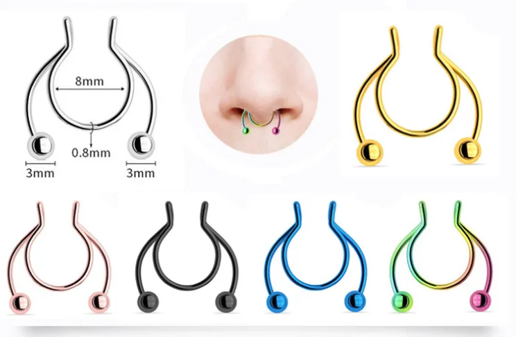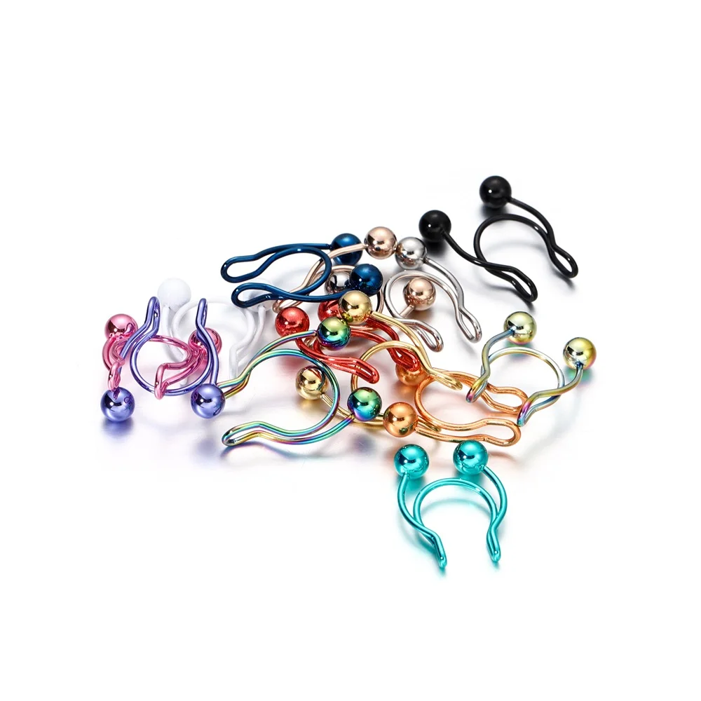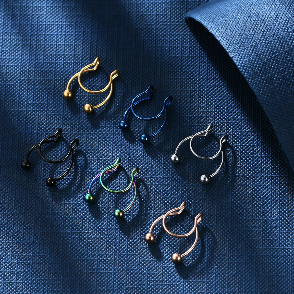 1 шт., не пирсинг носа, панк, Поддельные кольца для носа, кольца для перегородки, хирургические стальные красочные поддельные пирсинг носа, ювелирные изделия, хип-хоп рок