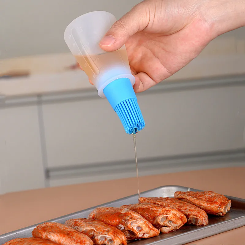 1 шт., портативная силиконовая бутылка для масла с щеточкой
