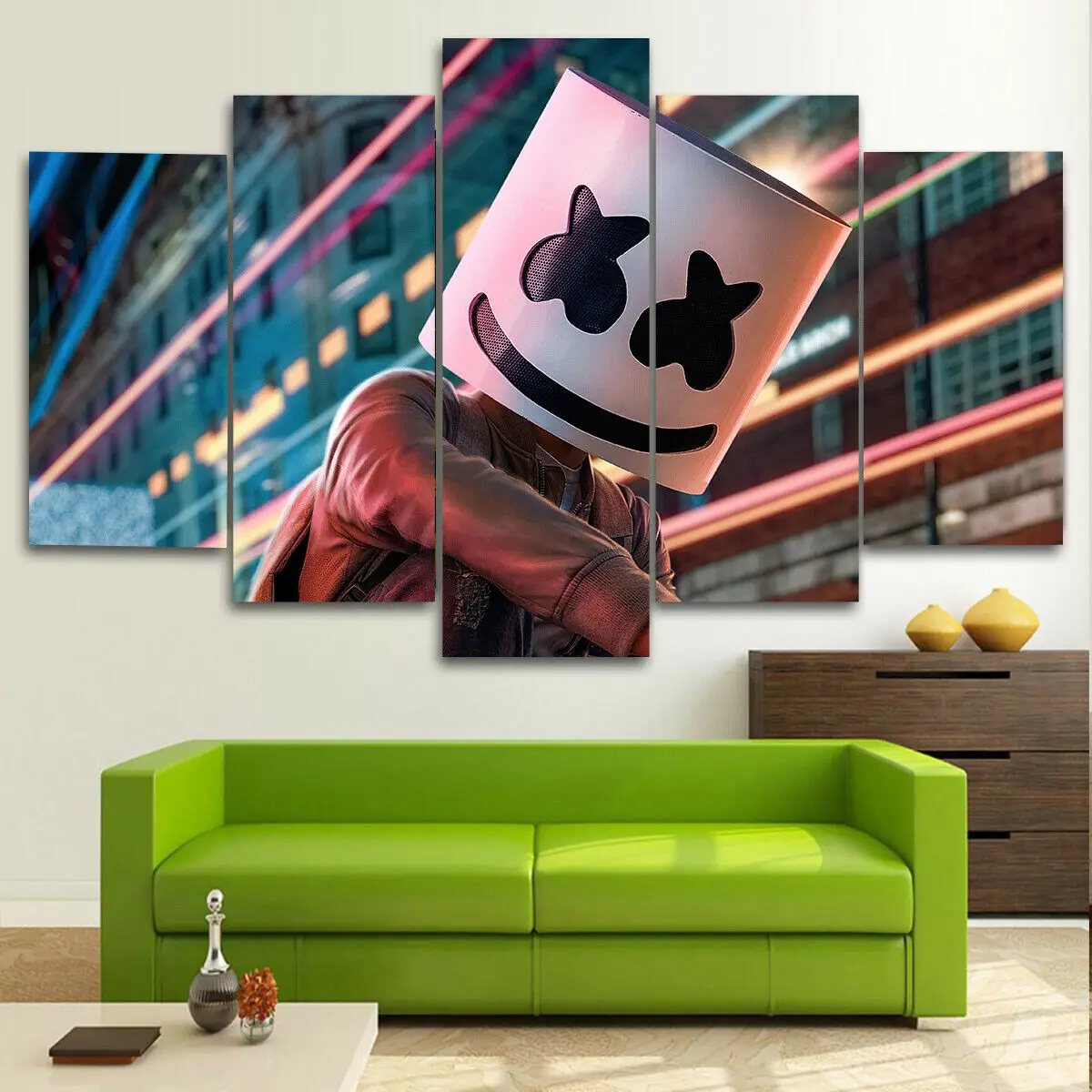DJ Marshmello крутой музыкант Холст Искусство HD печать плакат домашний Декор 5 панелей декор комнаты картины без рамки 5 штук