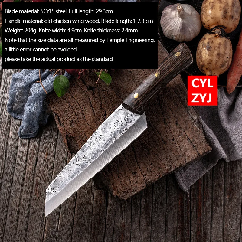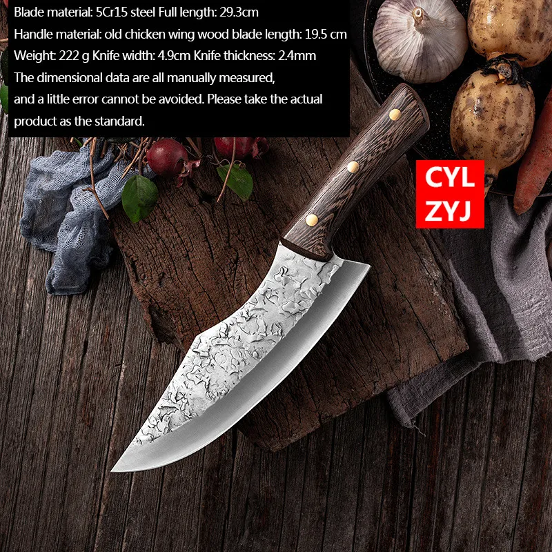 Материал лезвия: нержавеющая сталь 5Cr1 5movМатериал ручки: куриное крыло дерево + Медный гвоздь Натуральное куриное крыло деревоНатуральная деревянная ручка куриного крыла славится своей уникальной текстурой и излечивается высокотемпературным уплотнительным воском для улучшения цвета и долговечности. Дизайн волнистой ручкиВ соответствии с искусственным дизайном волнистая ручка используется для увеличения противоскользящего и комфортного ощущения. Медные заклепкиLuban Craft. Прочный, прочный и антикоррозийный. Слой процесса черненияПроцесс обработки почернения делает поверхность лезвия формой оксидного слоя для достижения эффекта анти-ржавчины. Выкованный молотокПосле высокотемпературной ковки, плотность и чистота стали улучшаются, так что твердость и твердость стали значительно улучшаются. Ручное фрезерование водыЛезвие сглажено вручную, лезвие гладкое, резкое, стойкое к порезу и легко измельчается.