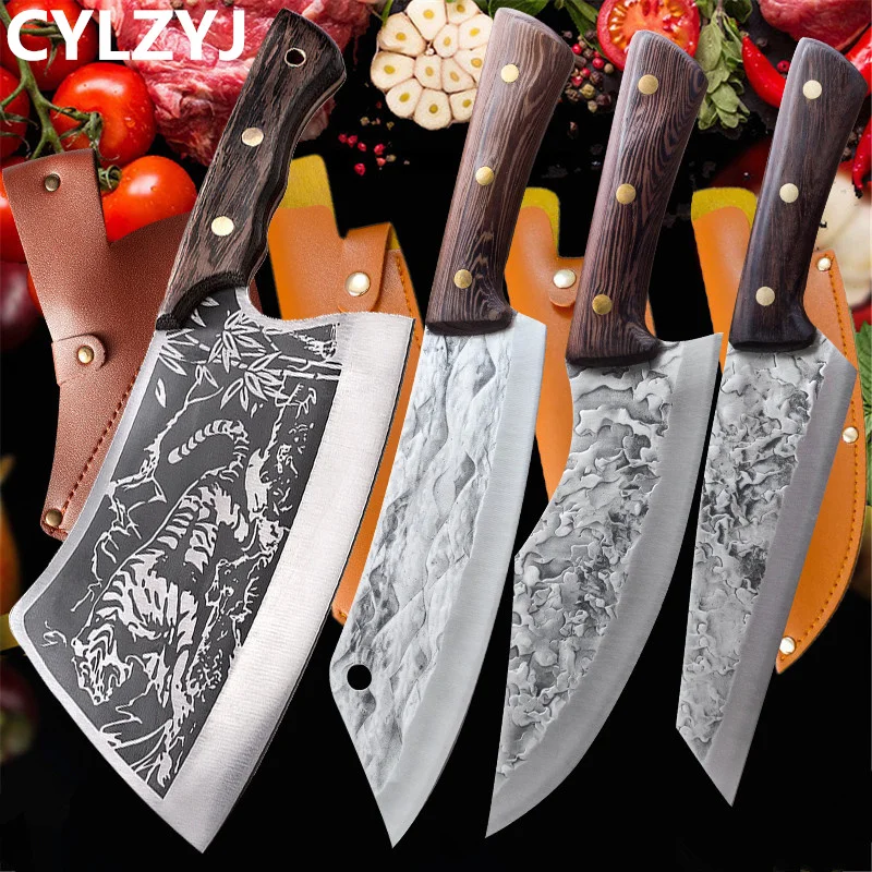Кованый шеф-нож 1-6 шт. в комплекте, кухонные ножи, охотничьи косточки, сербский шеф-повар, мясник, мясник, резак, универсальный нож, Подарочные чехлы
