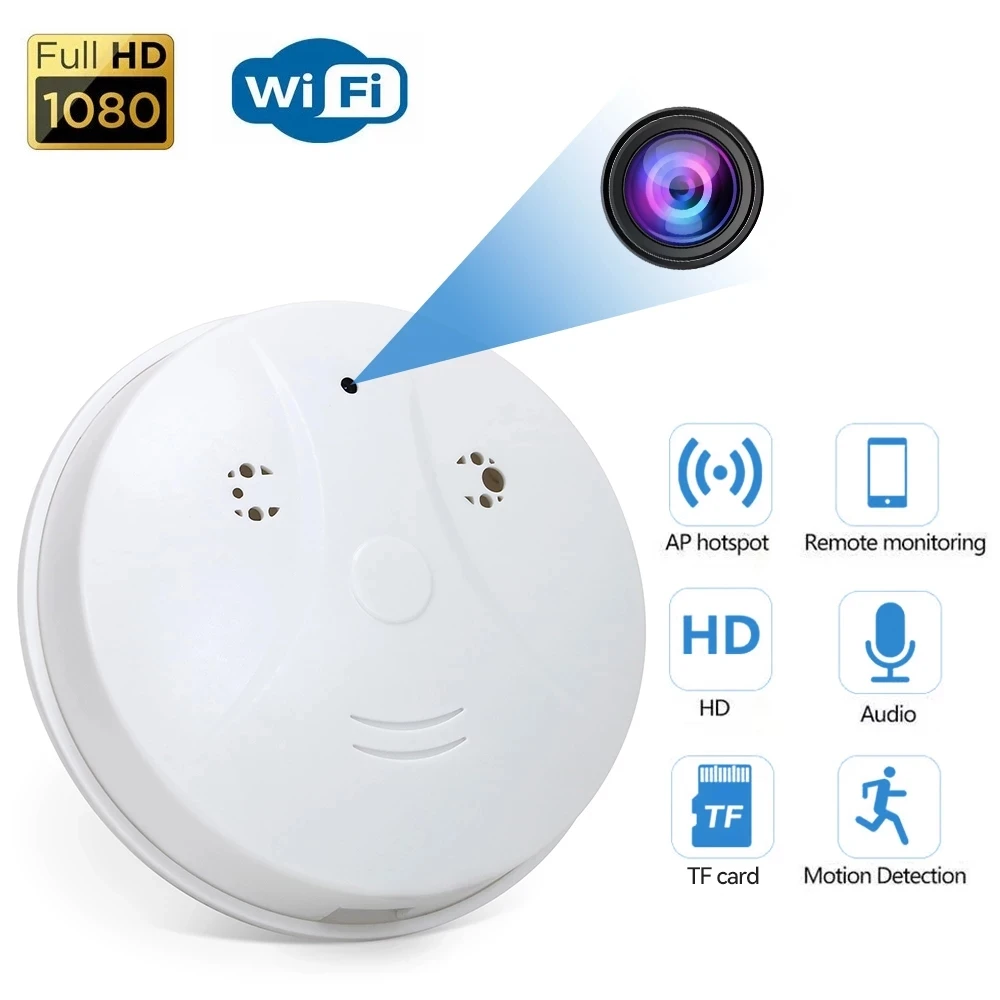 Мини-камера с функцией дымовой сигнализации, 1080P, Wi-Fi