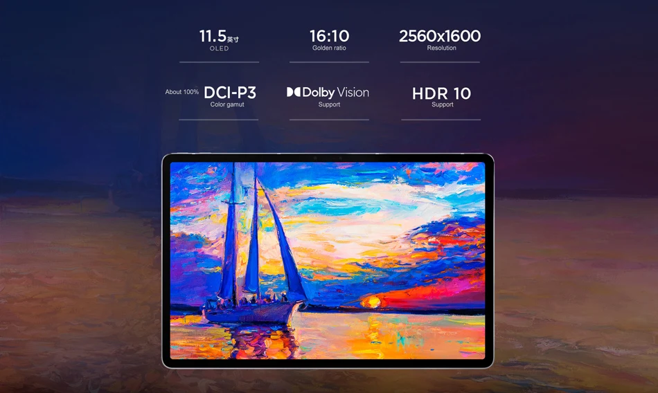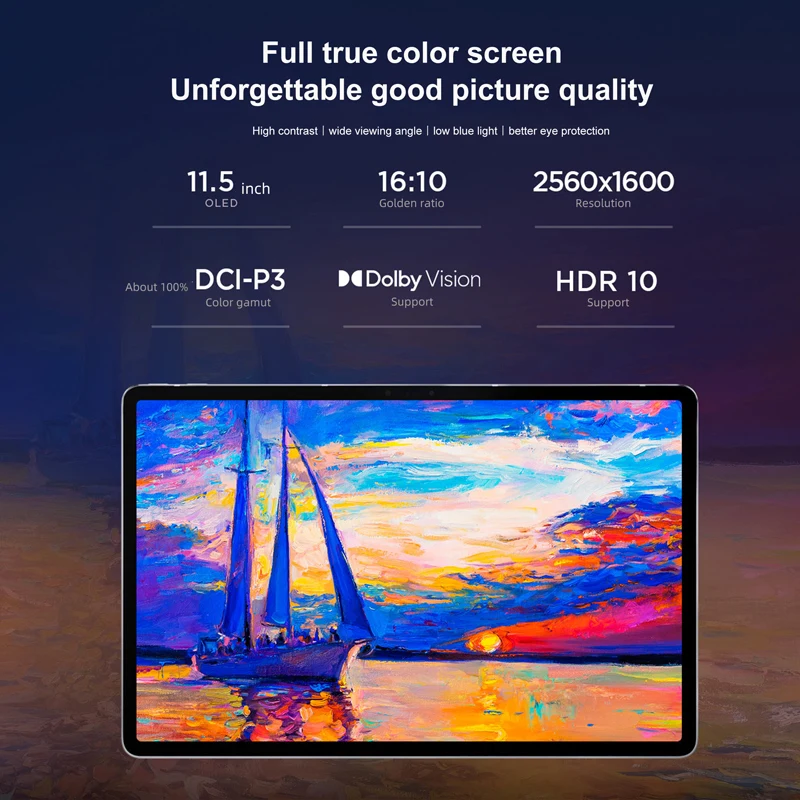 1. Операционная система Android 112. Qualcomm Snapdragon 8703. 6 Гб RAM + 128 ГБ ROM4. 11,5 дюймов OLED Экран, 2560x1600 resolution.90Hz.5. Поддержка 2,4 ГГц/5 ГГц Wi-Fi и Bluetooth 5,16. Поддержка идентификации лица, Dolby Atmos, GPS + BDS7. Питание от литиевой батареи 8600 мАч, поддержка быстрой зарядки QC3.08. 13 МП, 5 Мп задняя камера + 8 Мп * 2 фронтальная камера