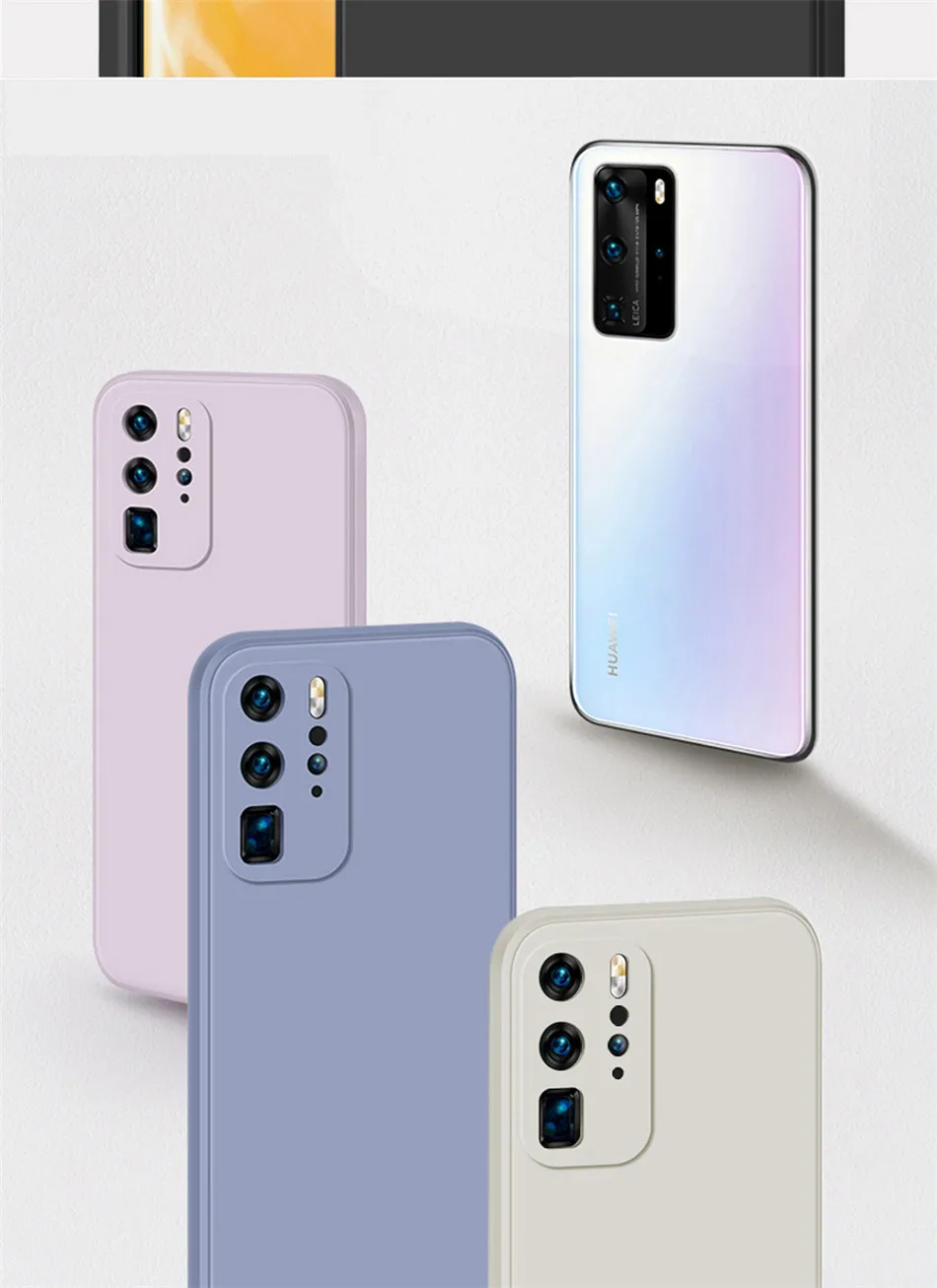 Square Liquid Silicone Phone CaseFor Huawei P50 Pro P smart 2021 back shell