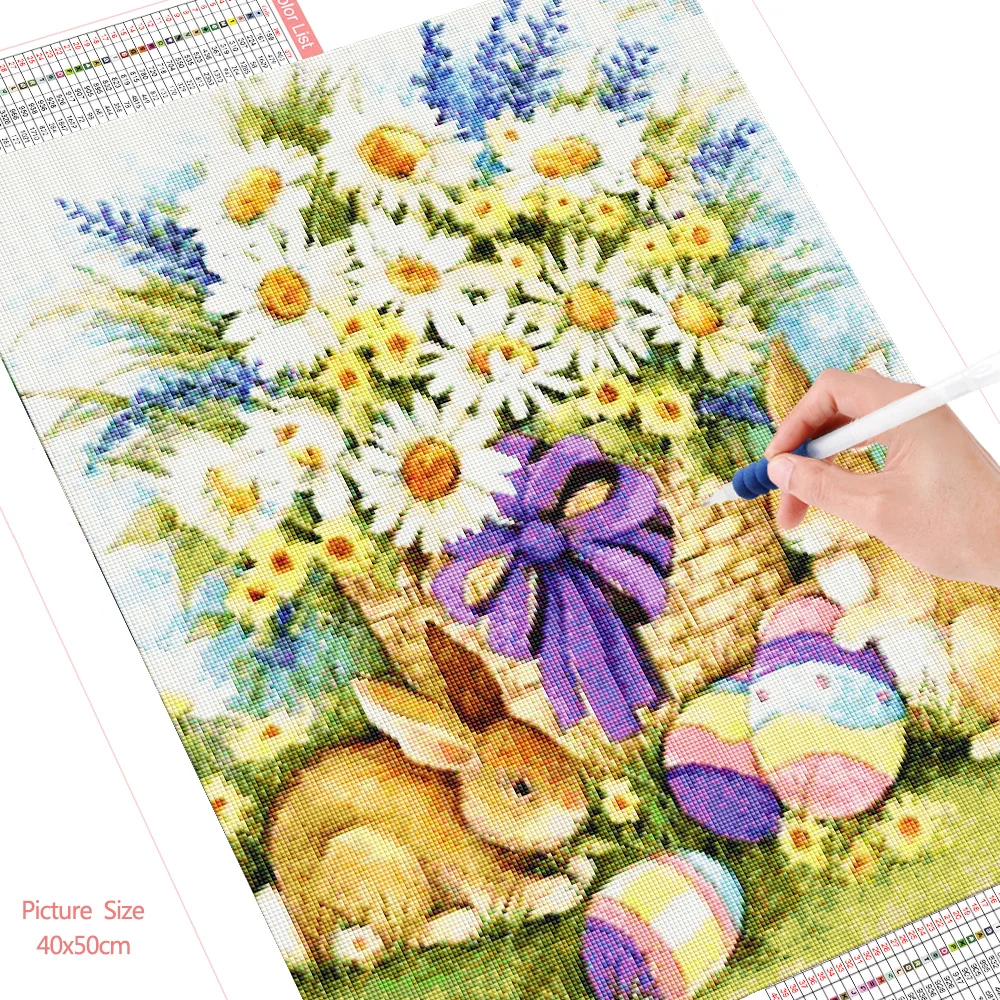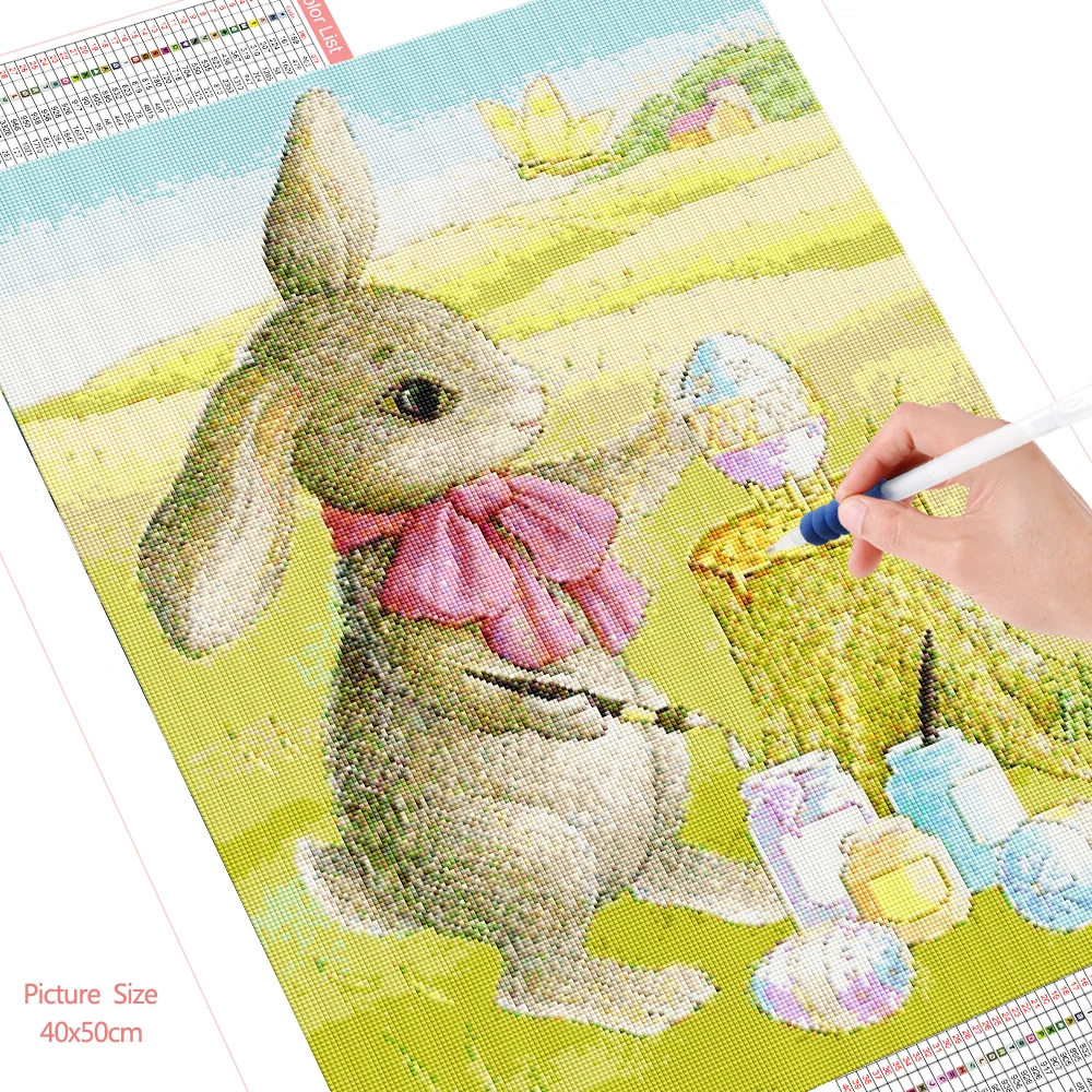 Алмазная мозаика HUACAN 5D с кроликом, картина с яйцами, Набор для вышивки с животными, персонализированный подарок, пасхальное украшение