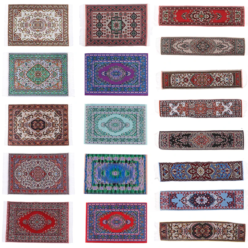 Мини-коврик для кукольного домика в турецком стиле 1:12, Цветочный Коврик, украшение для игрового домика, напольные покрытия, миниатюрный плетеный коврик, аксессуары для кукол