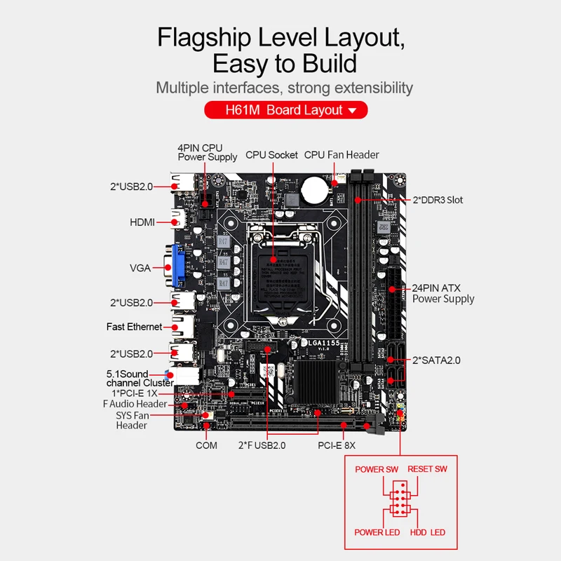 Материнская плата H61 LGA 1155 Материнская плата для Intel Core i7 i5 i3 Pentium Celeron LGA1155 DDR3 M-ATX Материнские платы Intel H61M Рабочий стол