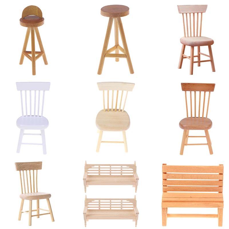 Миниатюрная мебель для кукол, 8 стилей, 1 шт., 112, деревянный Неокрашенный обеденный стул для декора кукольного домика