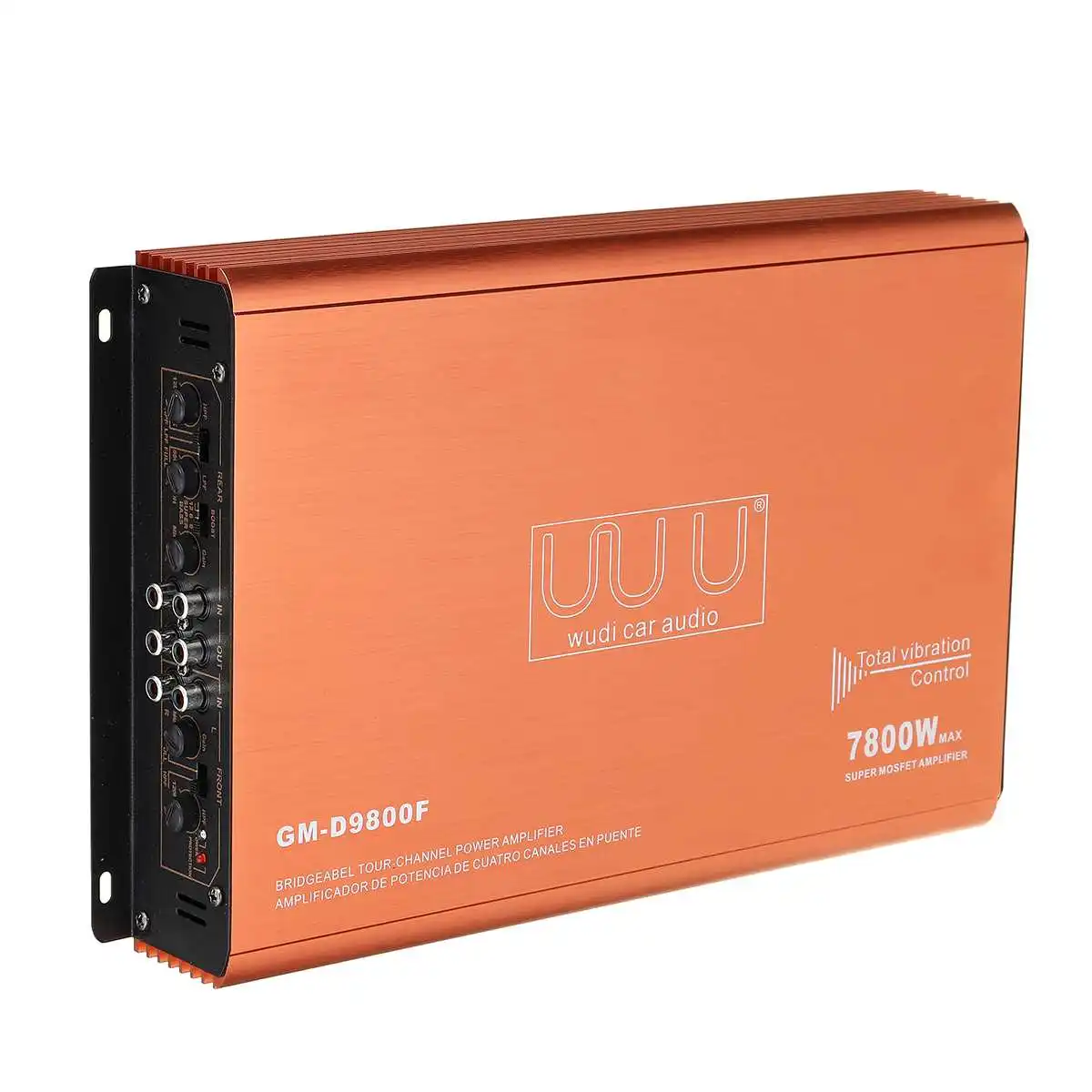 7800W 12V стерео усилитель 4 канала басов аудио Мощность усилитель сабвуферСпецификация:Модель: 9800FНазвание продукта: Автомобильный усилительНапряжение: 12 ВСопротивление: 4 ΩTHD< 0.02%Чувствительность: 91Чувствительность: 320 мВ-6 вРекомендуемый Тип предохранителя: 20AX2Размеры: 32x31 см x 6 смМощность RMS: 300 ВтМаксимальная мощность: 7800 ВтКаналы: 4 каналаRMS Выходная мощность 40 Ом (Вт): 4*100 ВтRMS Выходная мощность 20 Ом (ватт) 4*150 ВтМощность 40 Ом (Вт): 4*300 ВтЧастотная характеристика (+ 2 дБ):10HZ-3OKHZЦвет: оранжевый, как на фотоМатериал: алюминиевый сплавПрименение: УниверсальныйКол-во: 1 шт.Особенности:-4 способа защиты цепи-тепловой, ток, D.C.Moffset, и перенапряжения.-- Низкое искажение обеспечивает более четкий, сильный и мощный звук.Примечание:1. Мы предоставляем четкие изображения, измерения, где это возможно. Пожалуйста, проверьте как можно больше, чтобы убедиться, что товар тот, который вам нужен.2. Замеры сделаны вручную, поэтому возможны 0,5-1 дюйм разницы в связи с тем, что измерения выполнены вручную.(1 дюйм = 2,54 см)Посылка включена (как на фото):1x усилительВинты 4x1x Руководство пользователя