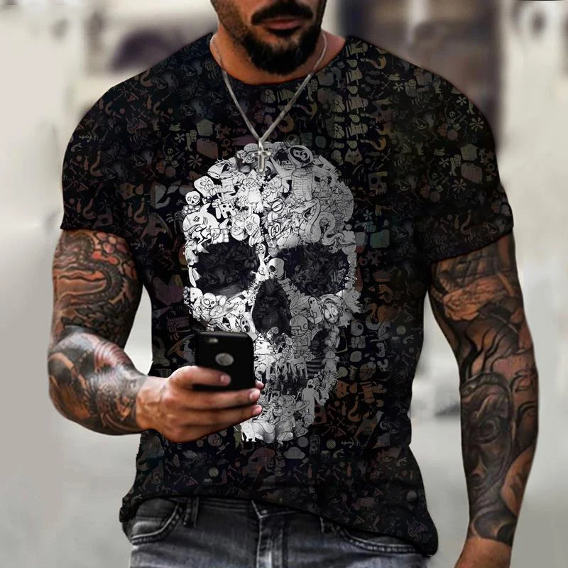 Футболка мужская с 3D-принтом черепа, Повседневная модная уличная футболка в европейском и американском стиле с коротким рукавом, Молодежная рубашка в стиле хип-хоп с круглым вырезом, лето